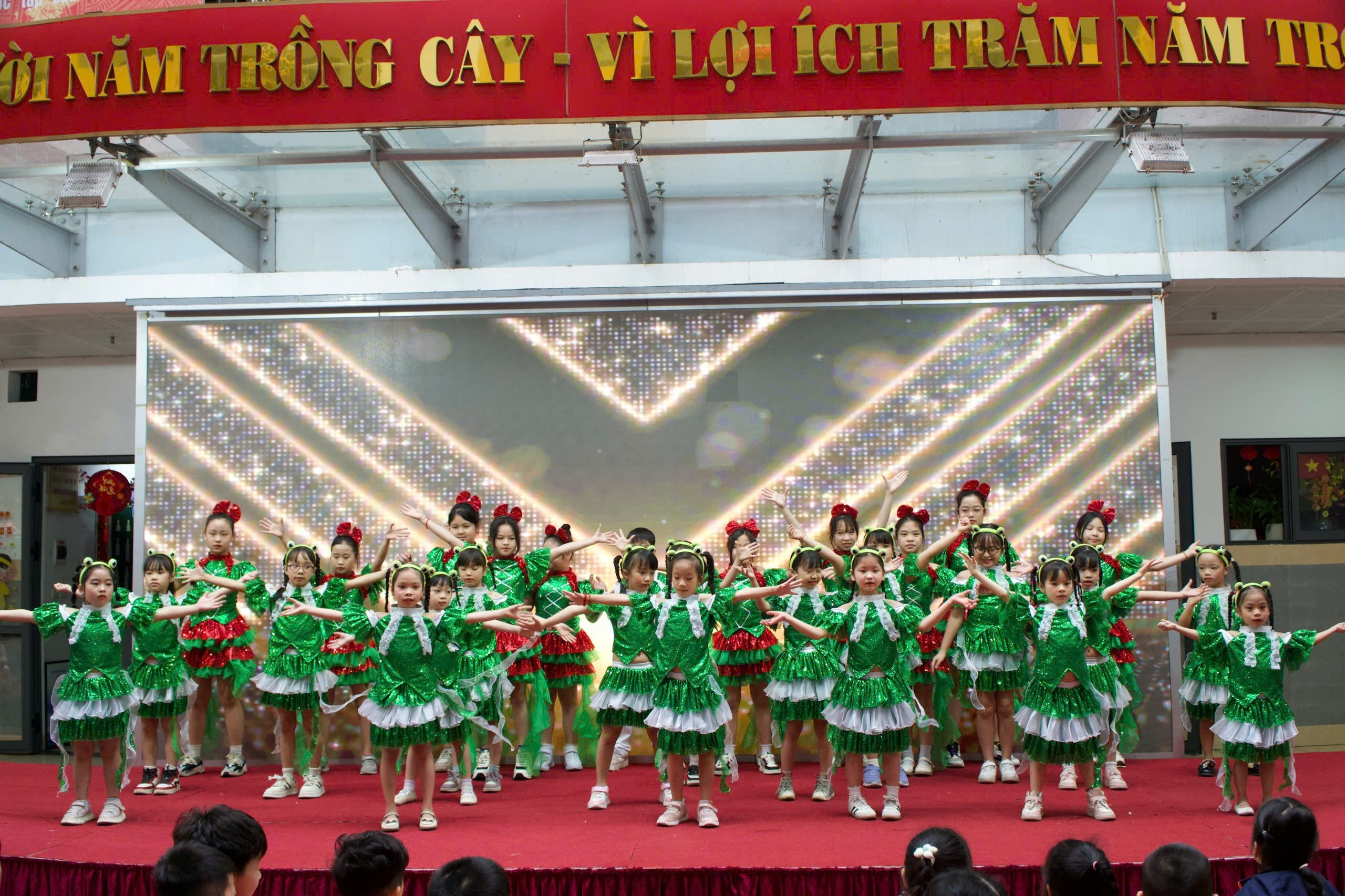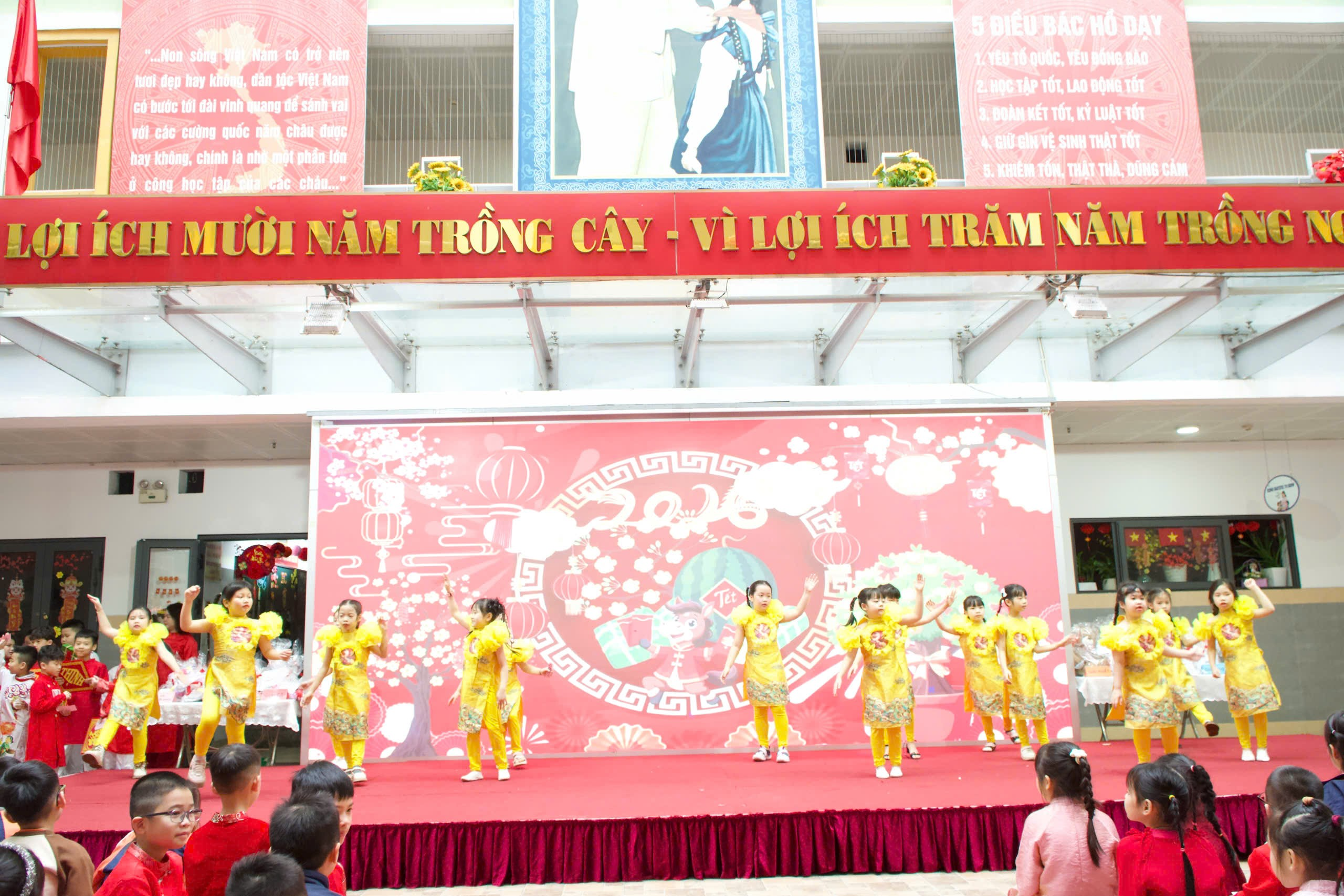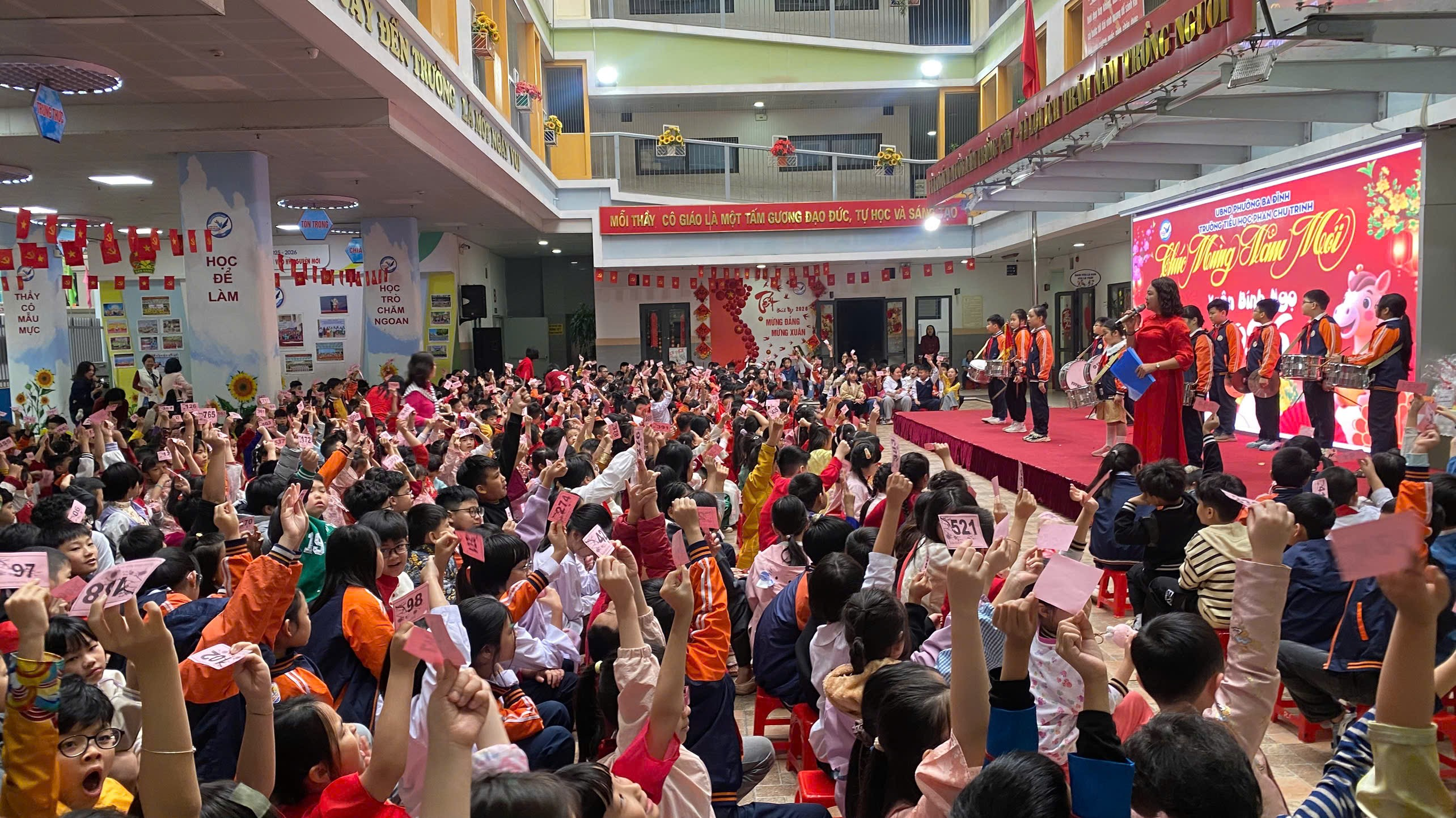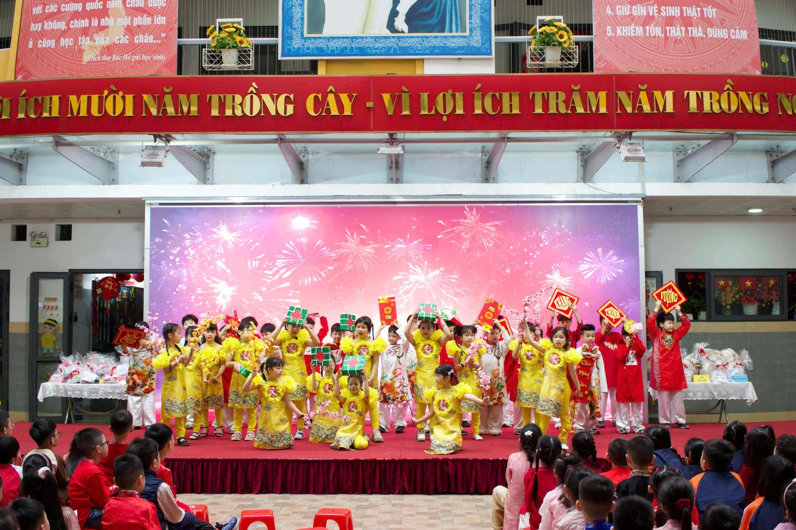 Chương trình được mở đầu bằng những lời chào thân thương gửi tới quý đại biểu, quý phụ huynh cùng toàn thể cán bộ, giáo viên và các em học sinh. Ngay sau đó, không khí xuân như được lan tỏa mạnh mẽ qua liên khúc văn nghệ “Xuân đẹp sao” do các em học sinh lớp 4C biểu diễn, mang đến những giai điệu tươi vui, rộn ràng.