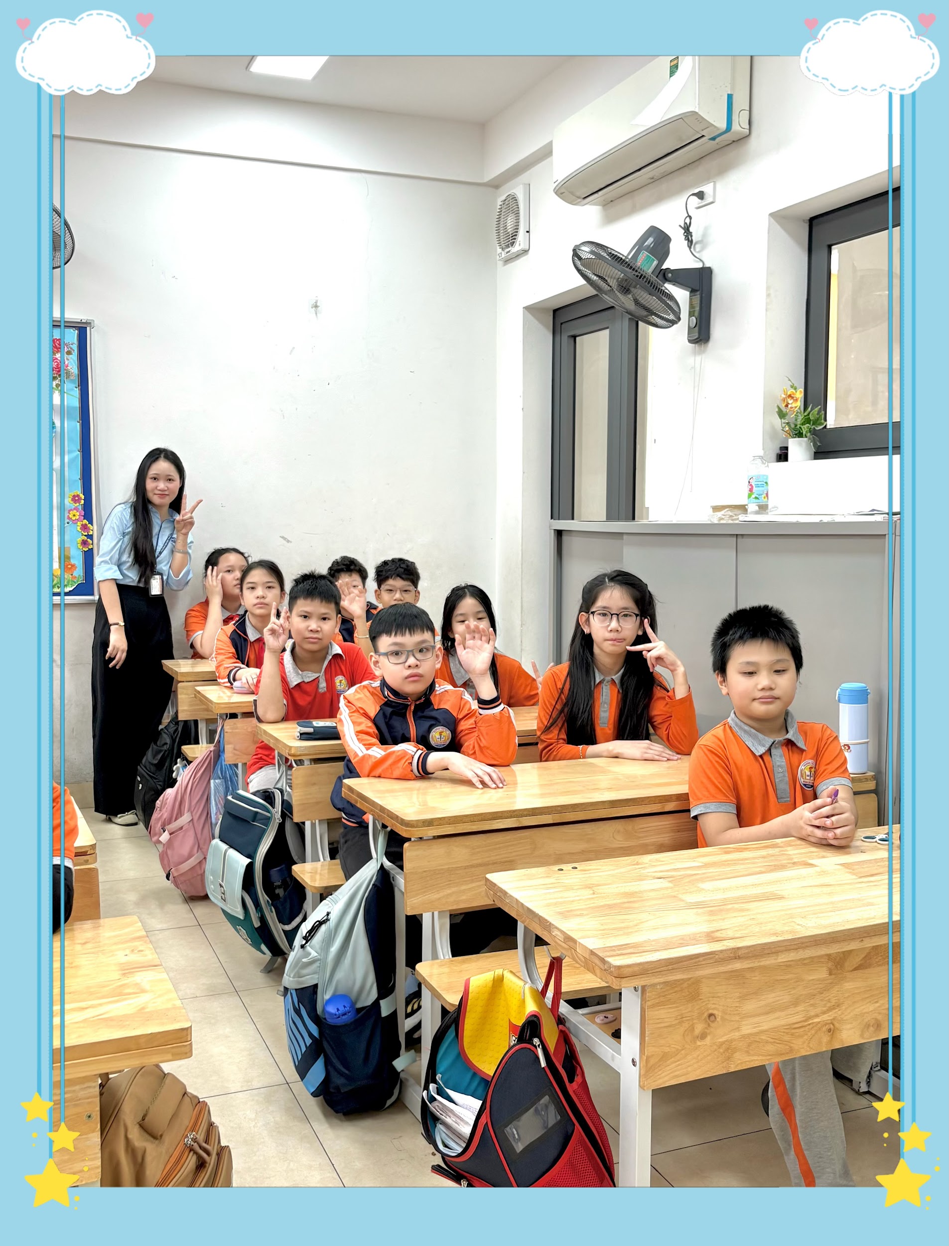 Sau đây là một số hình ảnh trong buổi đầu gặp gỡ của giáo viên chủ nhiệm Ngô Thị Minh Châu và học sinh lớp 5D cùng 5 sinh viên thực tập.