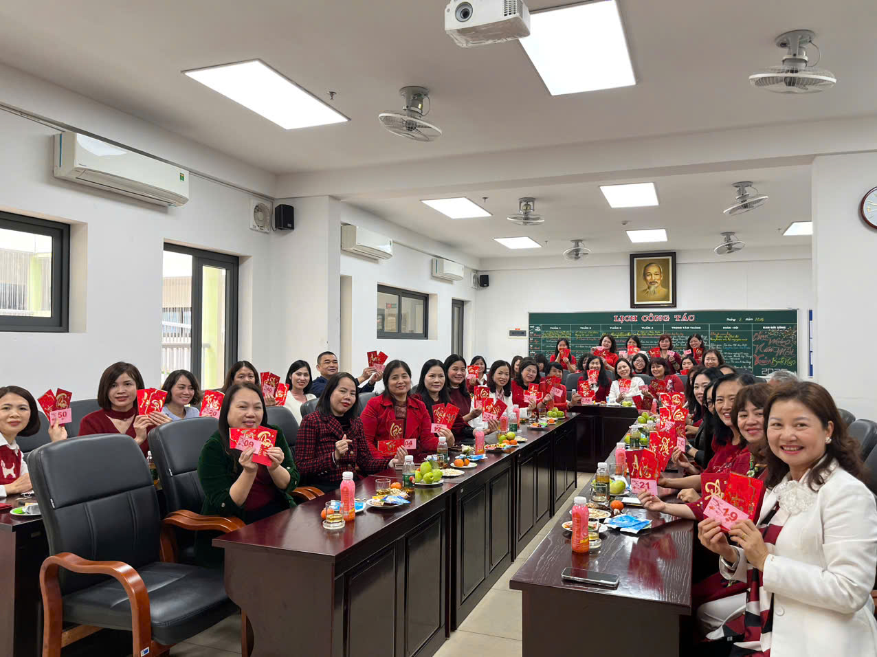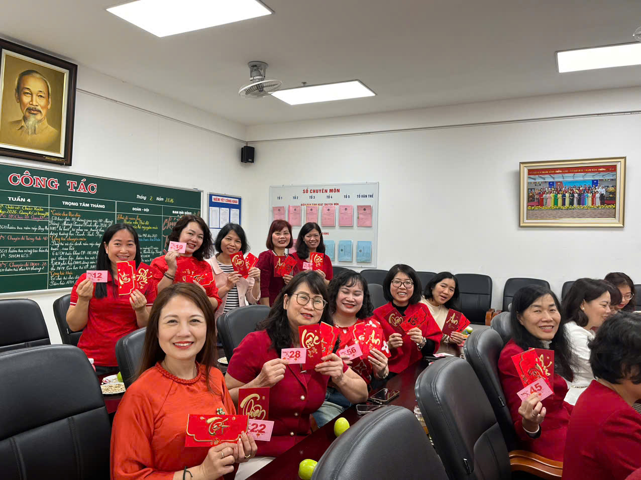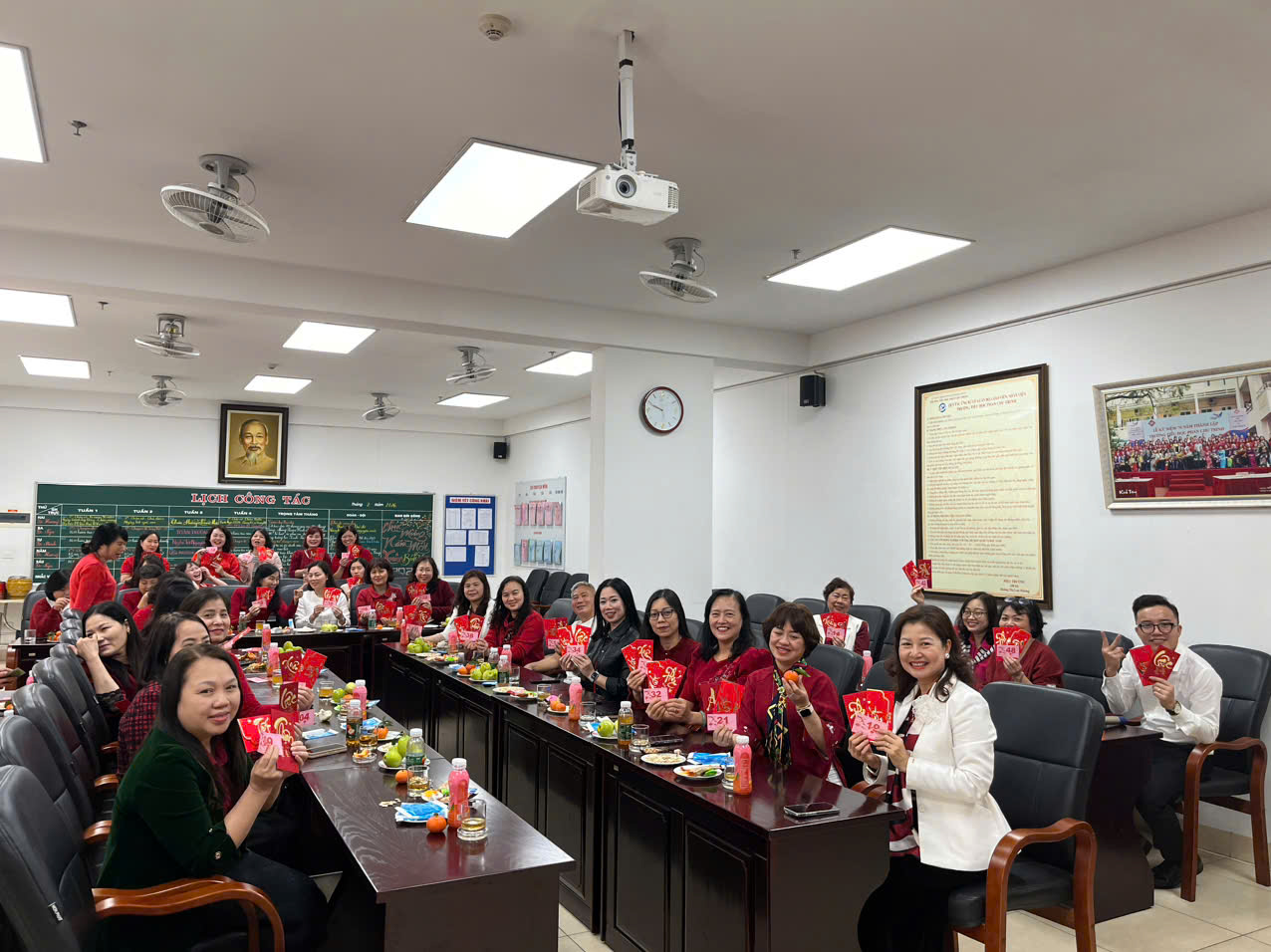 Buổi gặp mặt diễn ra giản dị nhưng đong đầy cảm xúc. Những lời thăm hỏi, những cái bắt tay thân tình, những phong bao lì xì trao tay đầu năm như gửi gắm ước mong may mắn và bình an. Nụ cười rạng rỡ trên từng gương mặt đã làm nên một bức tranh xuân ấm áp trong mái trường thân yêu.