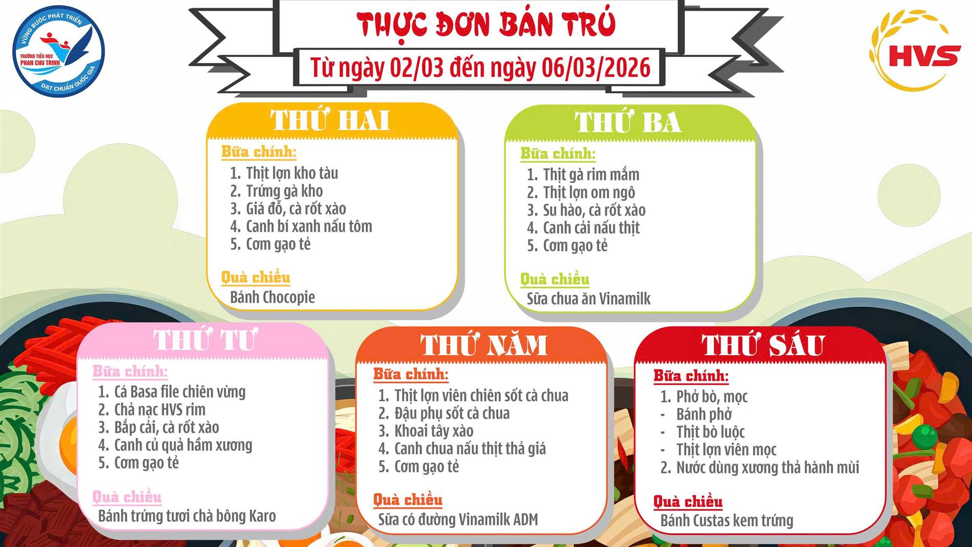 Thực đơn Bán trú tuần 23 năm học 2025 - 2026