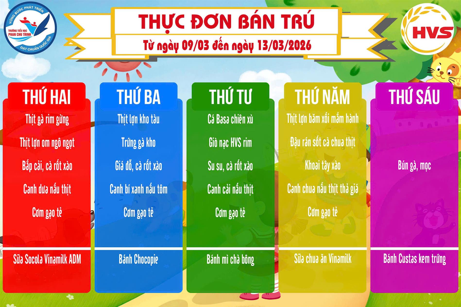 Thực đơn Bán trú tuần 25 năm học 2025 - 2026