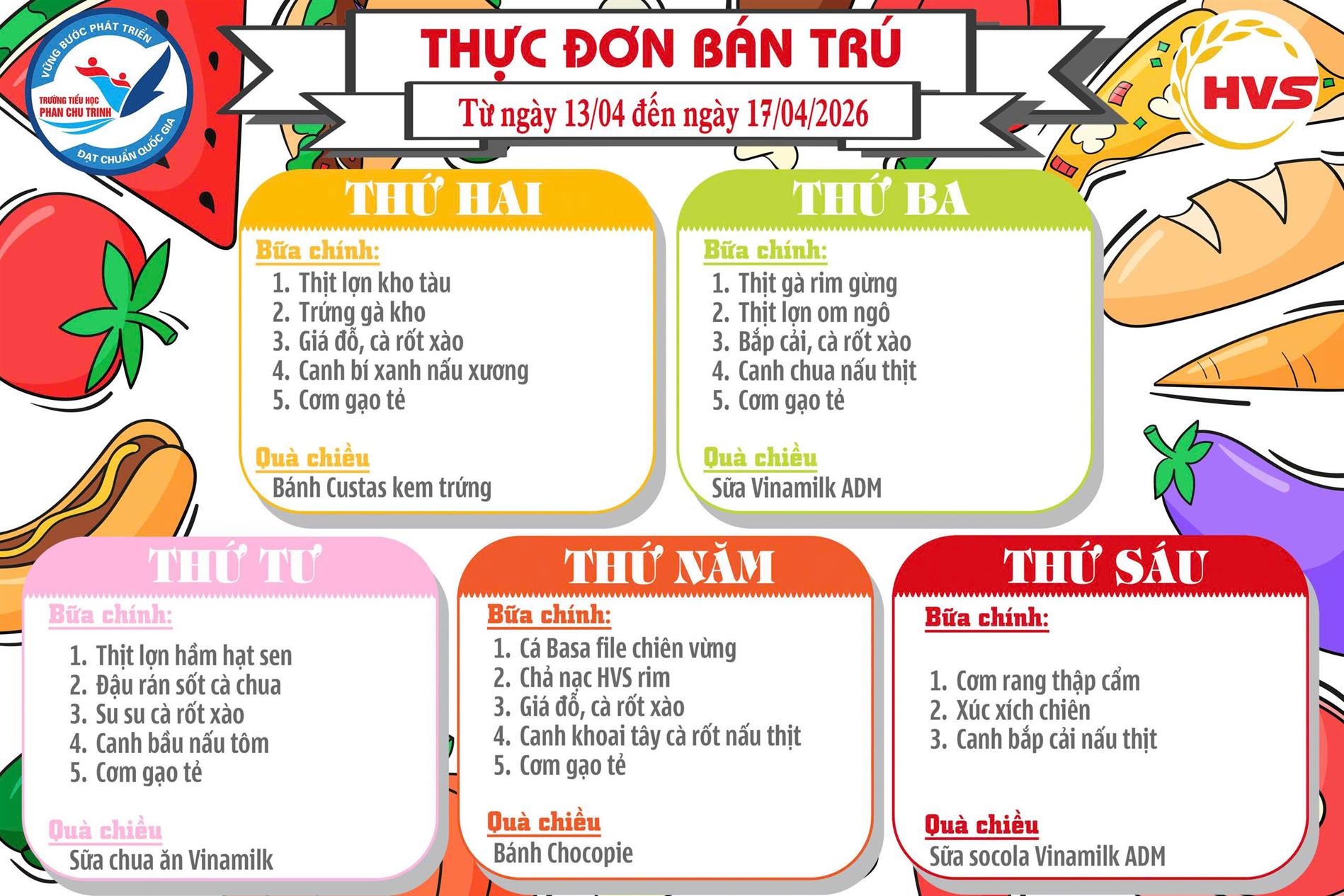 Thực đơn Bán trú tuần 29 năm học 2025 - 2026