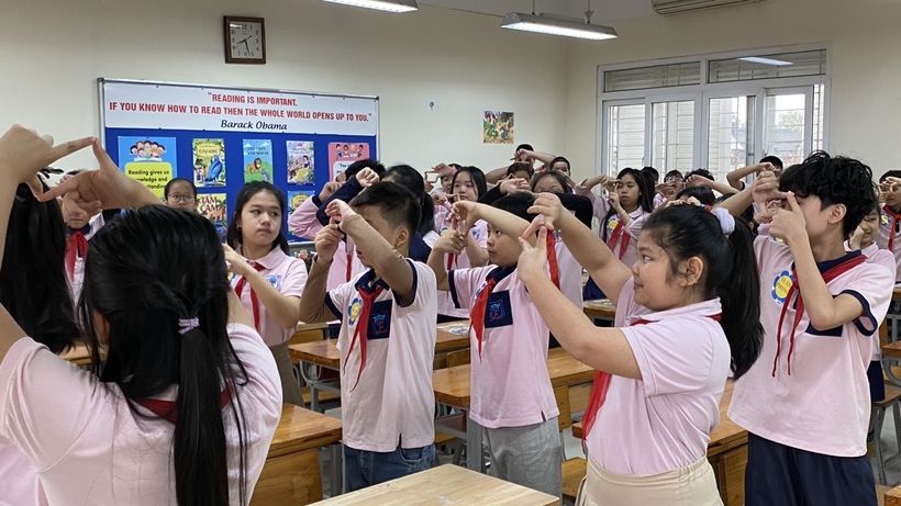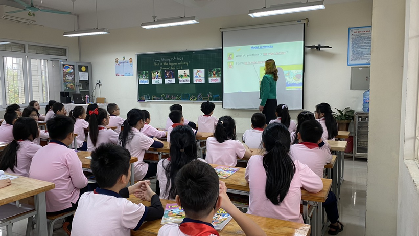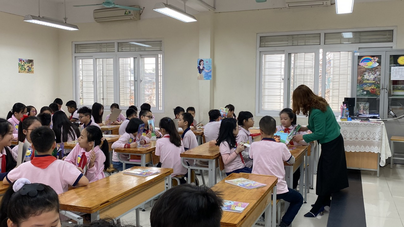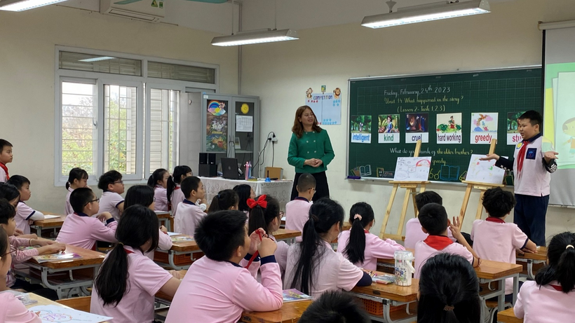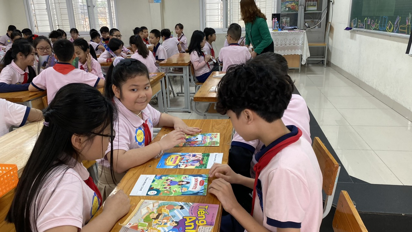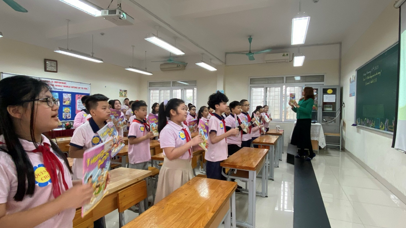 Với sự dẫn dắt đầy truyền cảm của cô Đoàn Hồng Giang, các bạn học sinh lớp 5G Trường Tiểu học Trung Tự đã bước vào tiết học Tiếng Anh “Unit 14 - What happened in the story” một cách đầy hứng khởi. Khi bài hát “I'm Gonna read a book today” được cô giáo Đoàn Hồng Giang và các bạn học sinh hát vang rộn ràng, đó cũng là lúc tình yêu, sự ham thích tìm hiểu thế giới diệu kì từ những cuốn sách cùng với sự tò mò, kích thích được khám phá những điều mới mẻ, thú vị từ bài học của các bạn học sinh được bắt đầu.