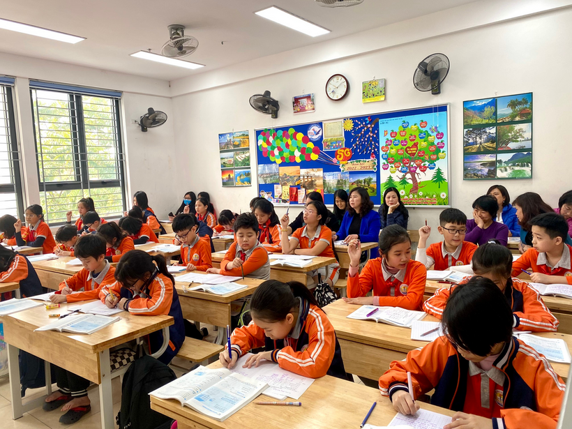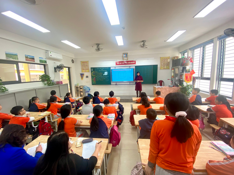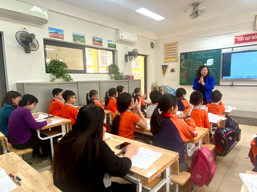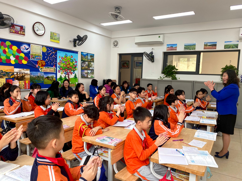 Điểm nhấn thú vị và thành công của tiết chuyên đề còn là cuộc trò chuyện thân mật của cô giáo Hiệu trưởng với các bạn học sinh lớp 5G. Bằng lối nói chuyện dí dỏm, hóm hỉnh, từ câu hỏi dễ đến câu hỏi khó rồi đến cả những câu hỏi lật ngược vấn đề - “hỏi xoáy đáp xoay” mà cô Hiệu trưởng đưa ra cũng đều được các bạn sôi nổi giơ tay trả lời chính xác. Sự tự tin của các trò đã khiến cho các thầy cô tham dự tiết chuyên đề đều cảm thấy hài lòng và phấn khởi trước sự chủ động lĩnh hội kiến thức của học trò.