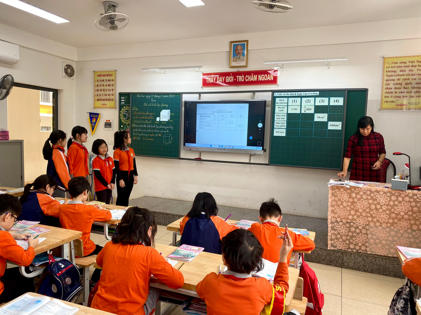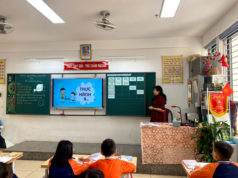 Để giúp các em phát triển được những năng lực như tự học, hợp tác,… cô giáo Hoàng Vân Anh – GVCN lớp 5G với sự sáng tạo và niềm say mê chuyên môn, đã thực hiện một tiết chuyên đề Toán hấp dẫn và hiệu quả với bài “Thể tích hình lập phương”