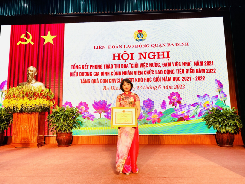 Cô giáo Hàn Thị Thúy Ngọc vinh dự đón nhận Giấy khen “Gia đình công nhân viên chức lao động tiêu biểu năm 2022” của Liên đoàn Lao động quận Ba Đình.