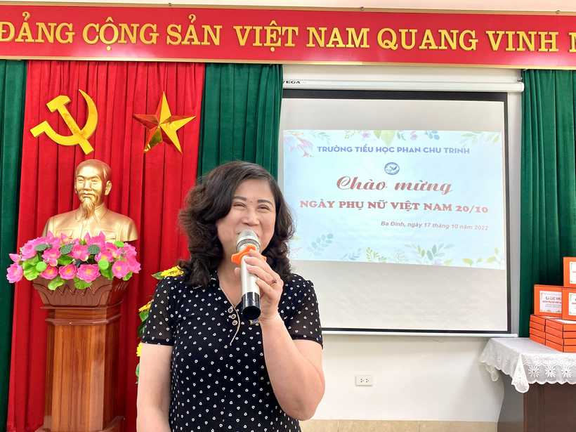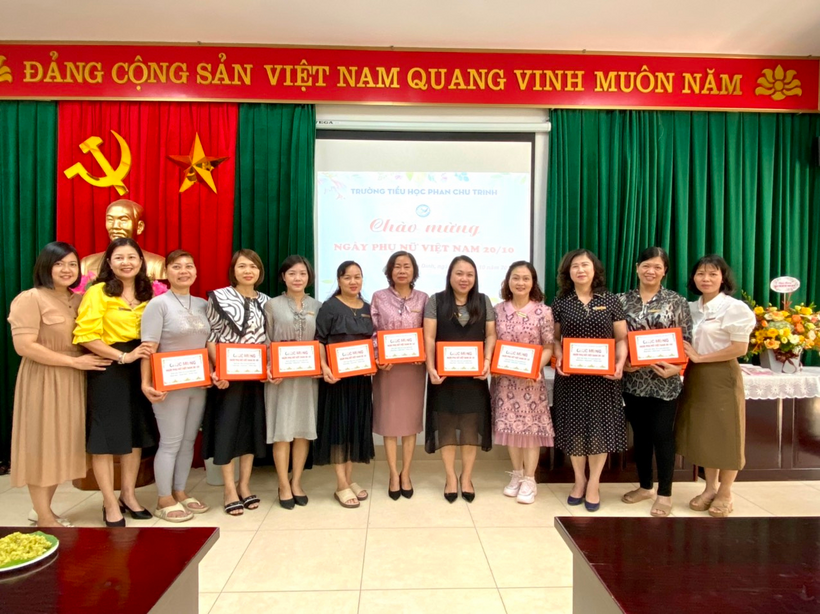 Đồng chí Hoàng Thị Lan Hương - Bí thư Chi bộ, Hiệu trưởng, đã phát biểu, tuyên bố lí do của buổi họp mặt. Đồng chí Ma Thị Ngọc Anh - Chủ tịch Công đoàn đã ôn lại ý nghĩa lịch sử và sự ra đời của ngày Phụ nữ Việt Nam 20/10. Qua đó đồng chí khẳng định trong những năm qua, chị em phụ nữ trường TH Phan Chu Trinh đã luôn khẳng định được vai trò quan trọng và có những đóng góp hết sức to lớn cho sự phát triển vững mạnh, toàn diện của nhà trường, giữ gìn, phát huy phẩm chất đạo đức trong sáng của nữ cán bộ, giáo viên, nhân viên trong ngành giáo dục, sống giản dị, đoàn kết, giúp đỡ nhau trong cuộc sống và trong công việc. Nhiều cán bộ, giáo viên nữ đã đạt danh hiệu “Giỏi việc nước, đảm việc nhà”; “Gia đình công chức, viên chức Tiêu biểu”, “Chiến sĩ thi đua”, “Lao động Tiên tiến”…