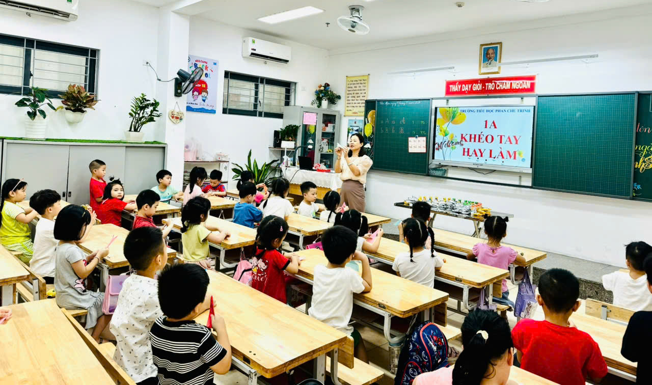 Nhiều con vì quá bỡ ngỡ nên trong giai đoạn đầu còn sợ đi học, hay khóc nhè, chưa kết nối với bạn bè. Nhưng điều này đặc biệt không xuất hiện ở lớp 1A trường Tiểu học Phan Chu Trinh, năm học 2024-2025, “tổ chim nhỏ” được dìu dắt bởi cô giáo chủ nhiệm Ma Thị Ngọc Anh.