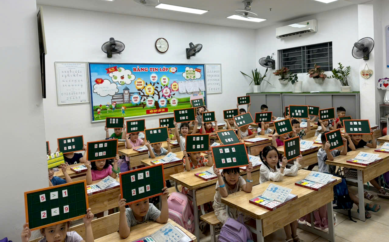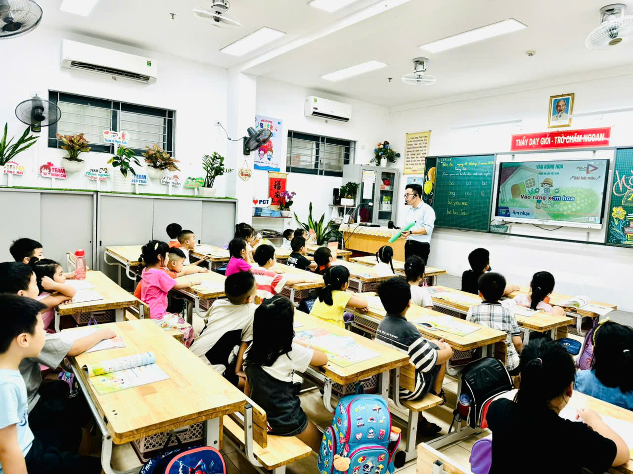 Những bài giảng thú vị của cô Ngọc Anh được các con lớp 1A hào hứng dõi theo.