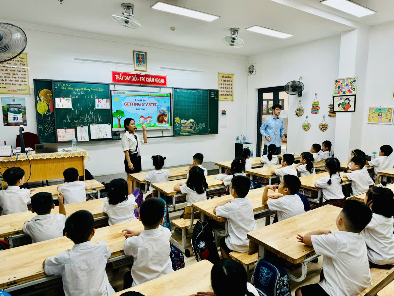 Giờ học Tiếng Anh thú vị cùng thầy giáo người nước ngoài và cô giáo trợ giảng.