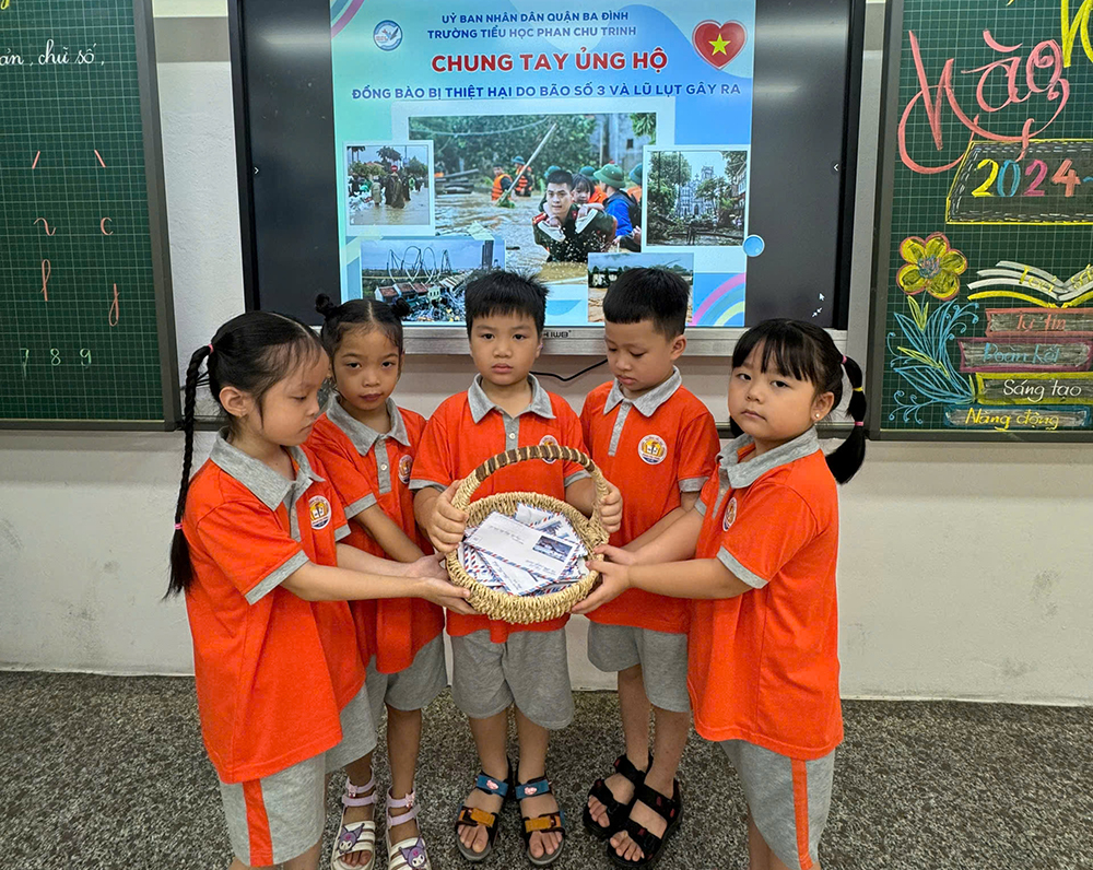 Không chỉ được học cách yêu thương bạn bè và thầy cô, dưới mái tường Tiểu học Phan Chu Trinh và trong “tổ chim nhỏ” 1A, các con còn được học cách yêu thương đồng bào thông qua những hoạt động có tính nhân văn sâu sắc như quyên góp từ thiện để ủng hộ người dân các tỉnh phía Bắc bị thiệt hại do cơn bão số 3 (Yagi) gây ra hồi giữa tháng 9 vừa qua.