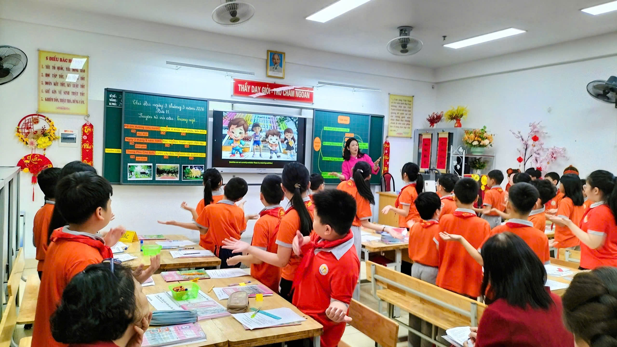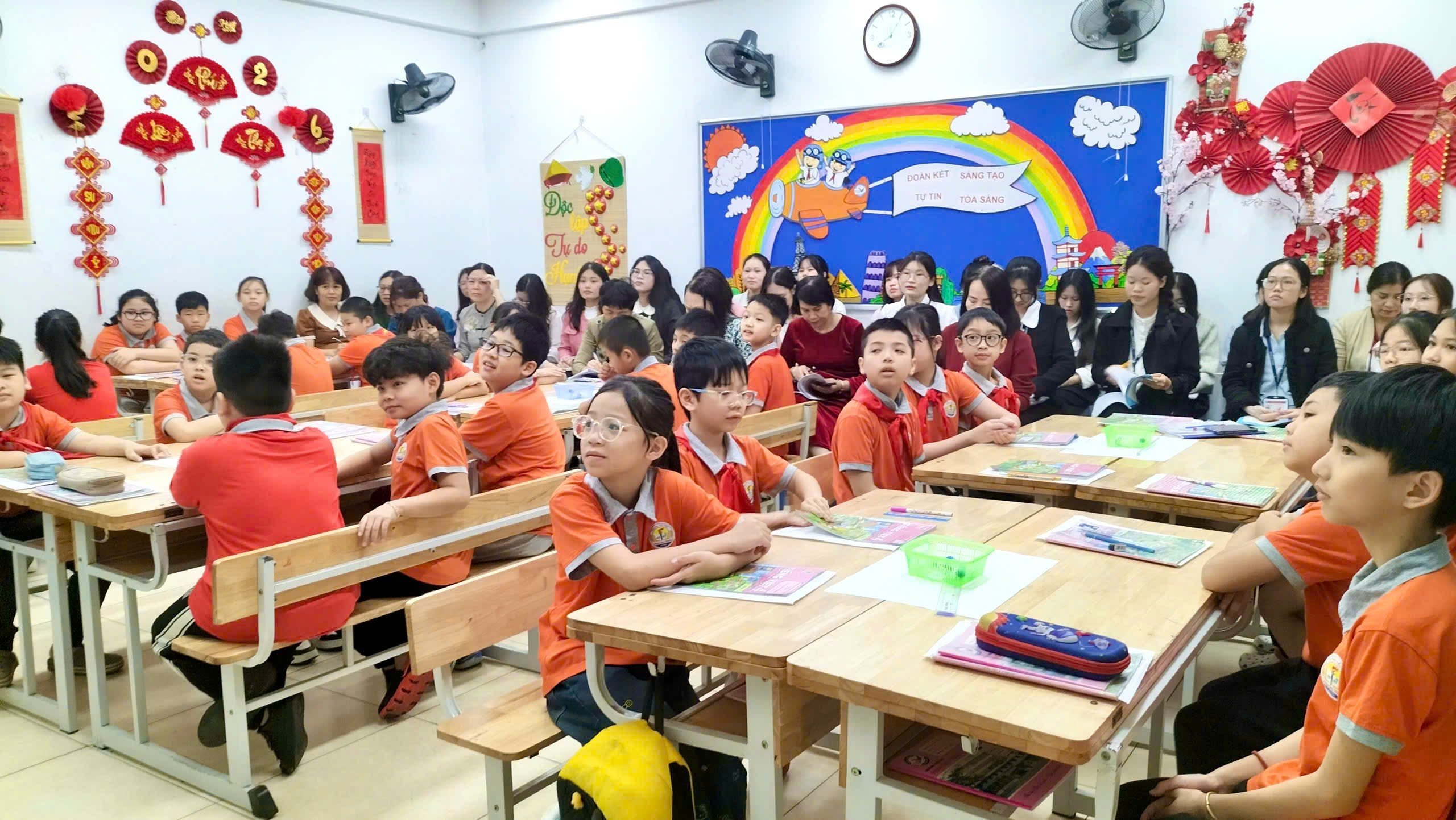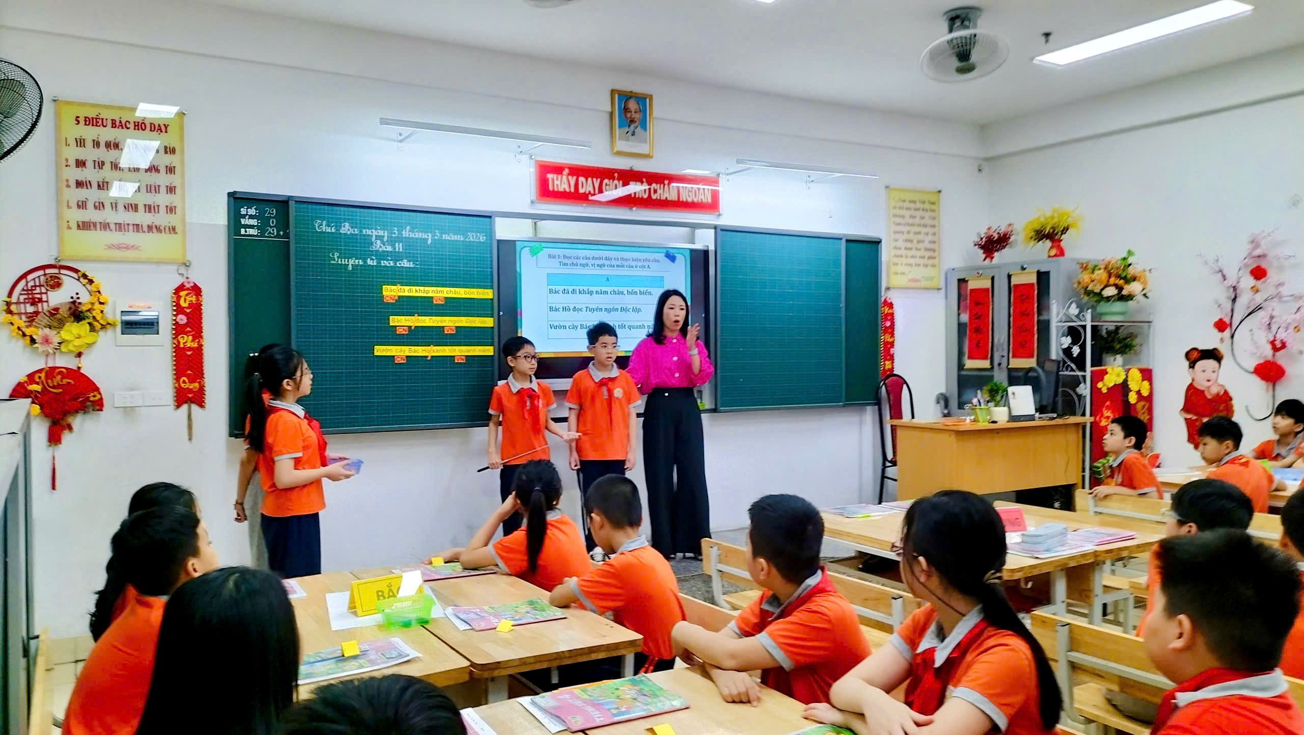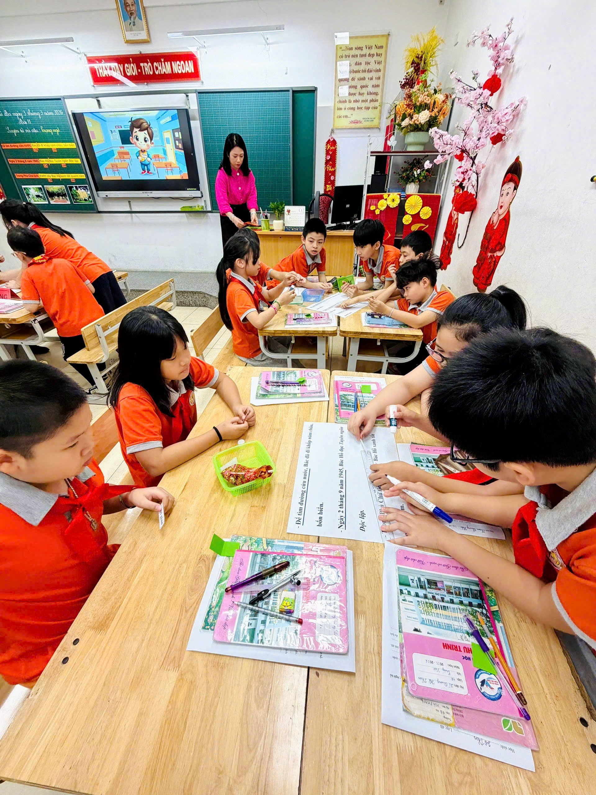 Xuyên suốt tiết học là hình ảnh những cánh tay giơ cao, những ý kiến trao đổi sôi nổi và sự tập trung tích cực của học sinh lớp 4B. Các em chủ động suy nghĩ, mạnh dạn chia sẻ, hợp tác hiệu quả trong nhóm và tự tin thể hiện quan điểm cá nhân. Kiến thức về trạng ngữ không còn là nội dung ngữ pháp trừu tượng mà trở thành công cụ để các em diễn đạt ý tưởng rõ ràng, sinh động hơn. Tiết chuyên đề của cô giáo Nguyễn Ngọc Anh đã thể hiện rõ sự chuẩn bị công phu, tư duy tổ chức linh hoạt và tinh thần đổi mới trong giảng dạy. Đây không chỉ là một giờ học thành công mà còn là minh chứng cho sự chuyển biến tích cực trong sinh hoạt chuyên môn của trường Tiểu học Phan Chu Trinh, góp phần nâng cao chất lượng dạy học môn Tiếng Việt trong nhà trường.