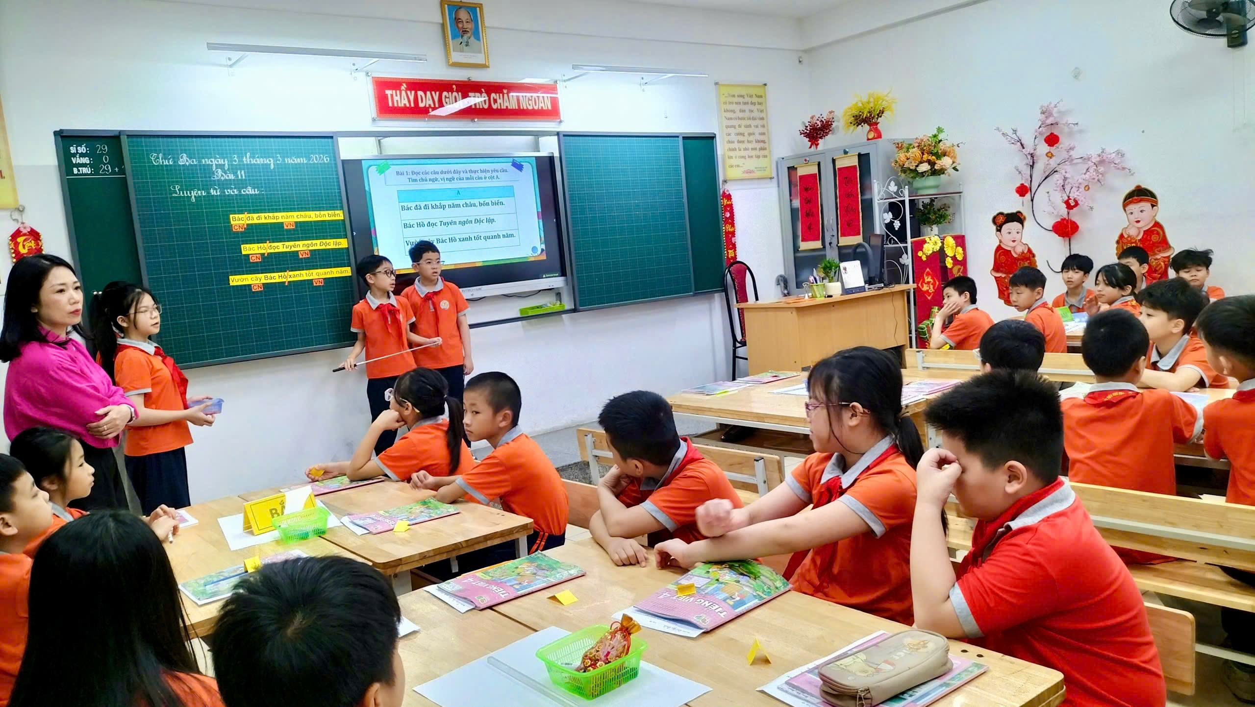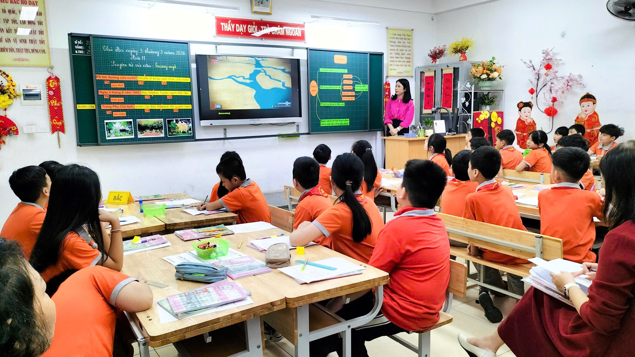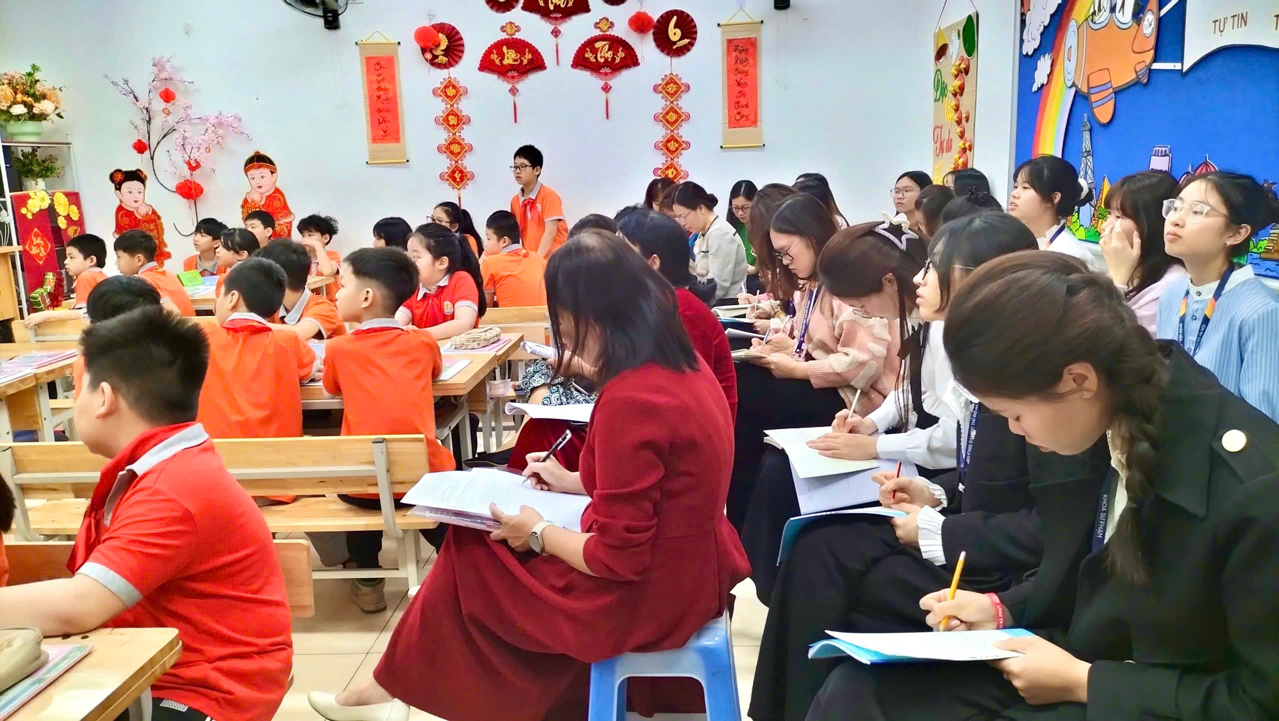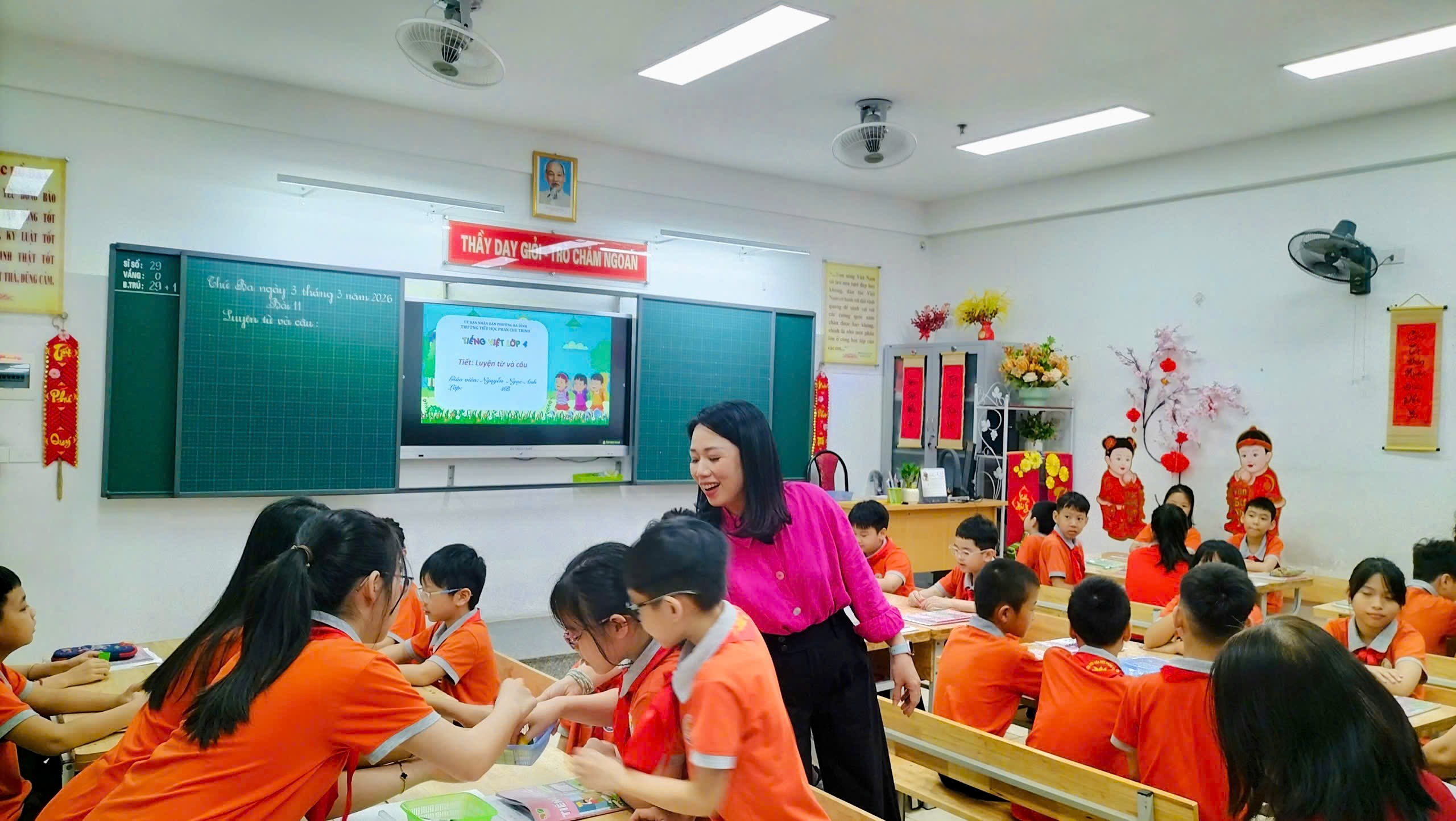 Xuyên suốt tiết học là hình ảnh những cánh tay giơ cao, những ý kiến trao đổi sôi nổi và sự tập trung tích cực của học sinh lớp 4B. Các em chủ động suy nghĩ, mạnh dạn chia sẻ, hợp tác hiệu quả trong nhóm và tự tin thể hiện quan điểm cá nhân. Kiến thức về trạng ngữ không còn là nội dung ngữ pháp trừu tượng mà trở thành công cụ để các em diễn đạt ý tưởng rõ ràng, sinh động hơn. Tiết chuyên đề của cô giáo Nguyễn Ngọc Anh đã thể hiện rõ sự chuẩn bị công phu, tư duy tổ chức linh hoạt và tinh thần đổi mới trong giảng dạy. Đây không chỉ là một giờ học thành công mà còn là minh chứng cho sự chuyển biến tích cực trong sinh hoạt chuyên môn của trường Tiểu học Phan Chu Trinh, góp phần nâng cao chất lượng dạy học môn Tiếng Việt trong nhà trường.