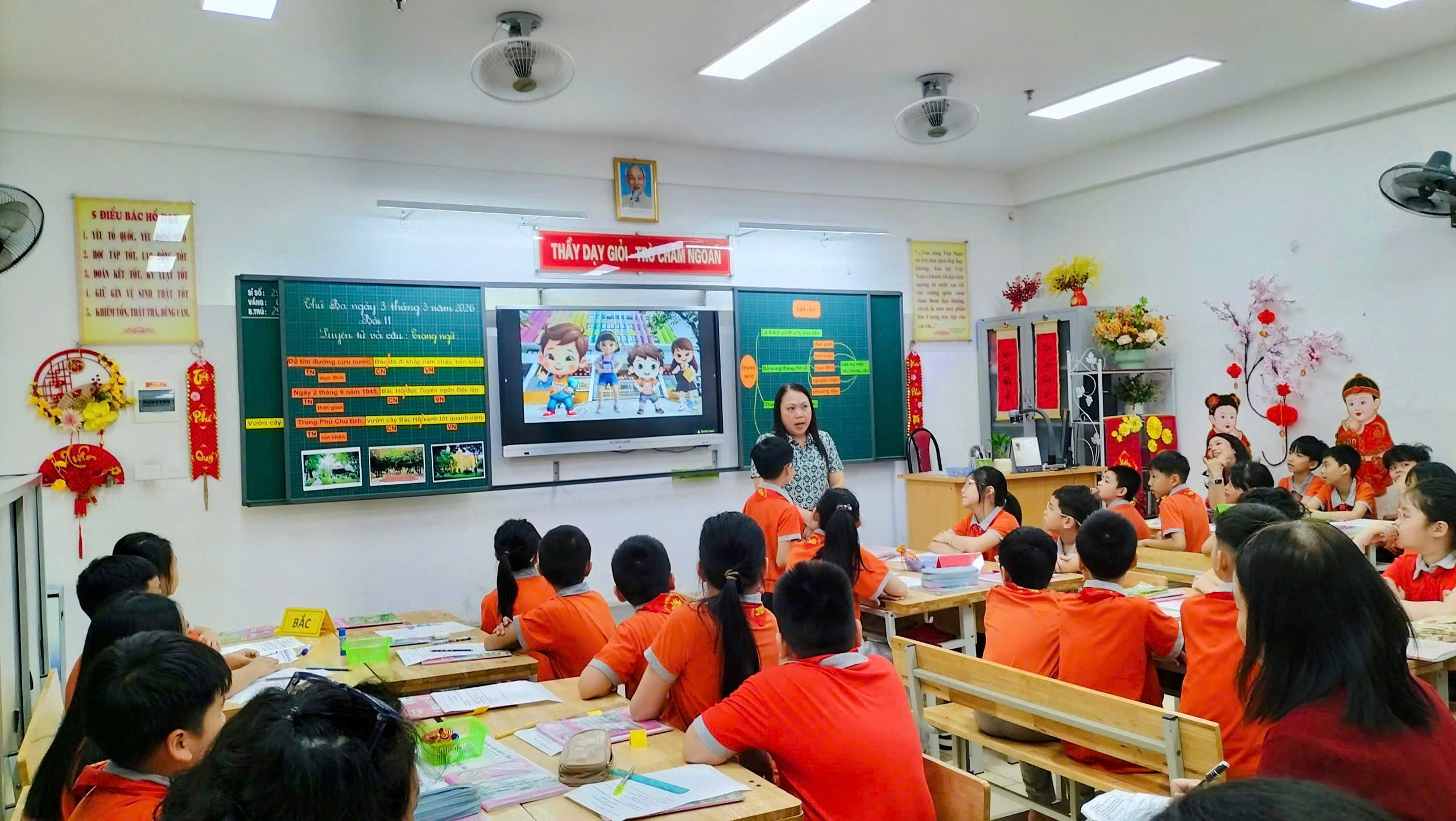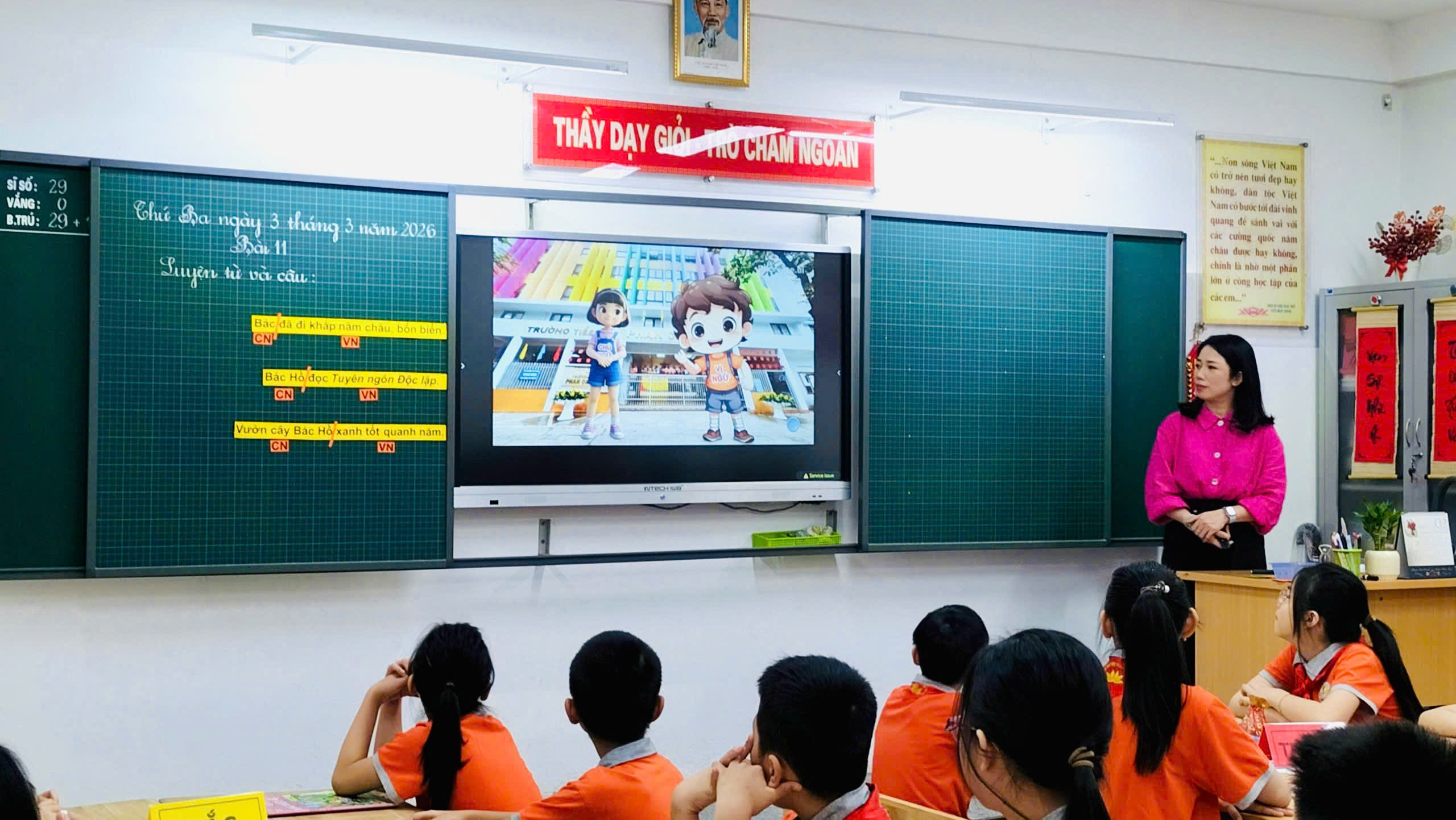 Sáng 03/3/2026, tại Trường Tiểu học Phan Chu Trinh, tiết học chuyên đề cấp trường môn Tiếng Việt, bài Luyện từ và câu: Trạng ngữ, do cô giáo Nguyễn Ngọc Anh-GVCN lớp 4B thực hiện đã mang đến không khí học tập sôi nổi, sáng tạo và giàu tính tương tác. Bài học “Trạng ngữ” (Bộ sách Kết nối tri thức với cuộc sống) không chỉ giúp học sinh nắm chắc kiến thức mà còn thể hiện rõ tinh thần đổi mới phương pháp dạy học theo định hướng phát triển phẩm chất, năng lực.
