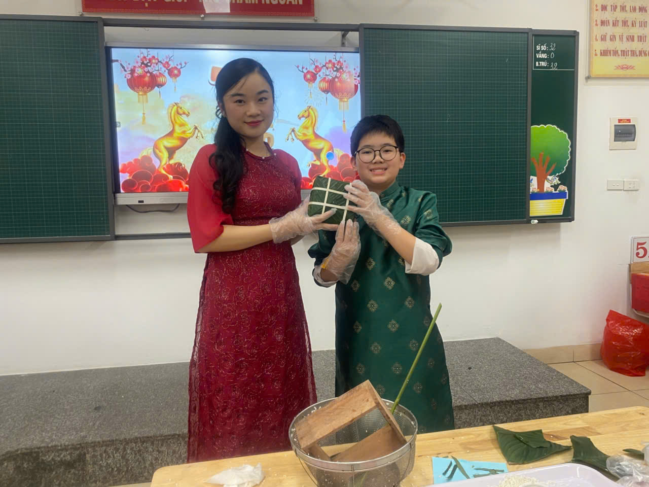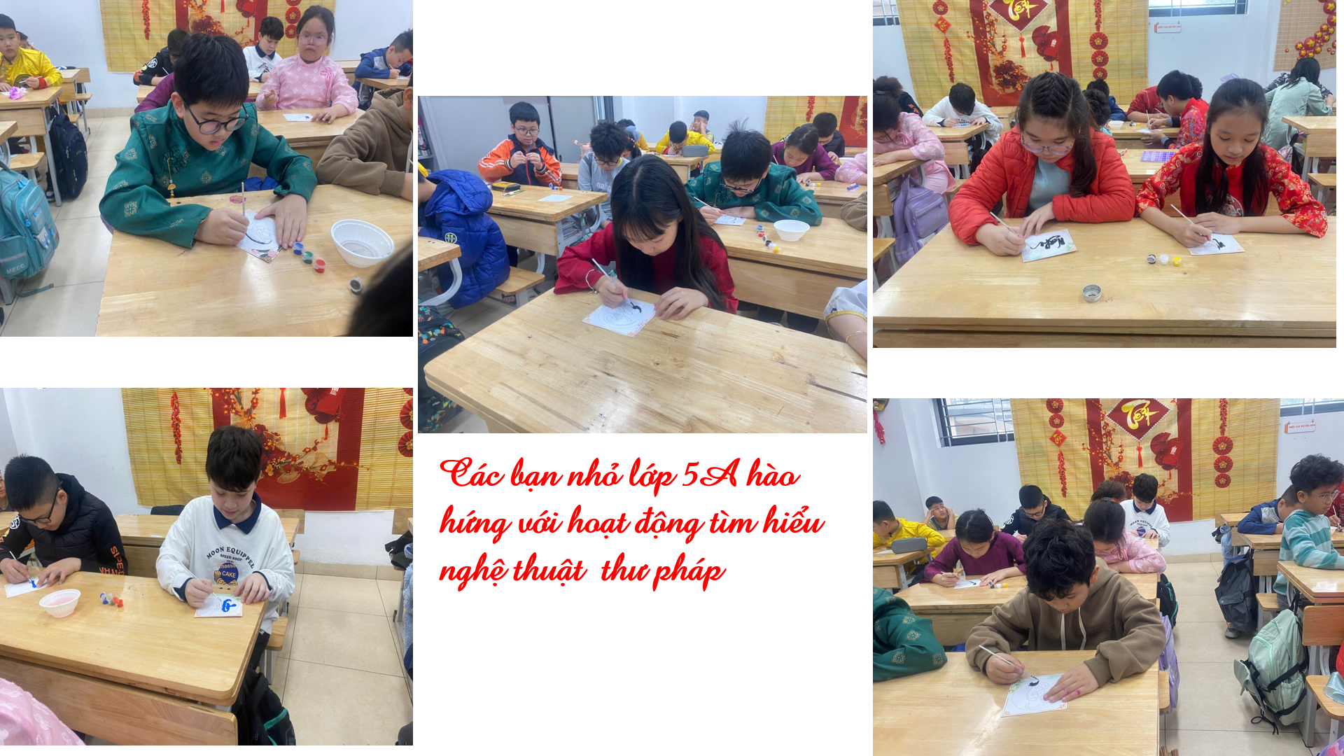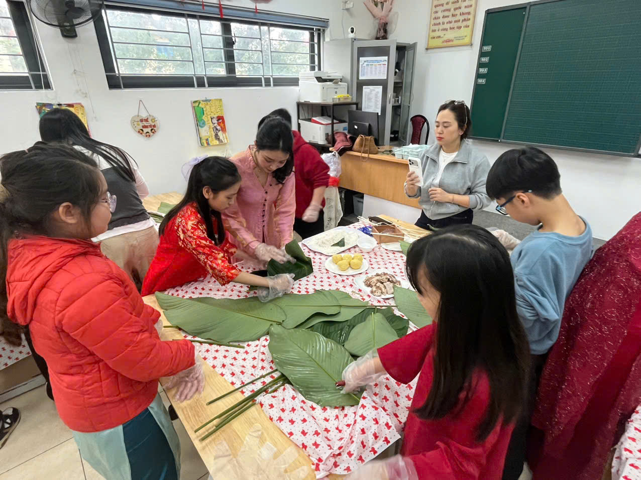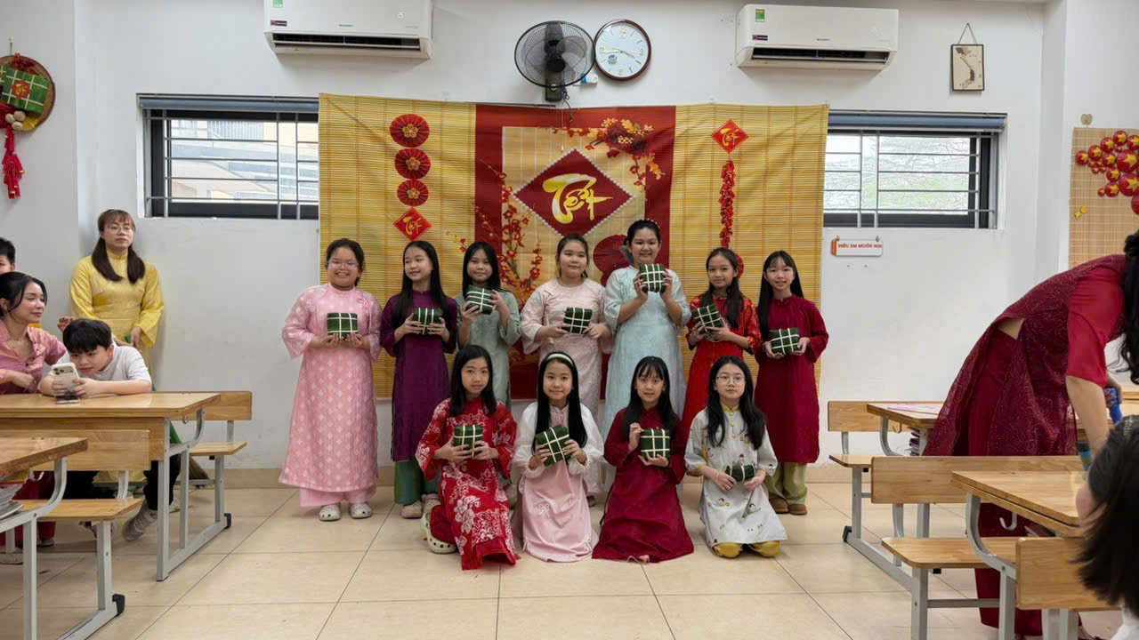 Khi ra về, trên tay các em là những bức thư pháp nhỏ mang theo ước nguyện đầu xuân cùng những chiếc bánh chưng xanh đầy yêu thương. Nhưng điều các em mang theo nhiều hơn cả chính là cảm giác ấm áp của một buổi chiều sum vầy, là niềm vui khi được làm việc cùng mẹ, cùng bạn bè, cùng thầy cô. Xuân rồi sẽ qua, những chiếc bánh sẽ được nấu chín, những bức thư pháp có thể phai màu theo thời gian. Nhưng ký ức về một buổi chiều “Tết yêu thương – Xuân gắn kết”, về những ánh mắt rạng rỡ, những tiếng cười trong trẻo, những khoảnh khắc bình dị mà ấm áp… sẽ còn ở lại rất lâu – như một mùa xuân nhỏ trong trái tim mỗi học sinh lớp 5A.