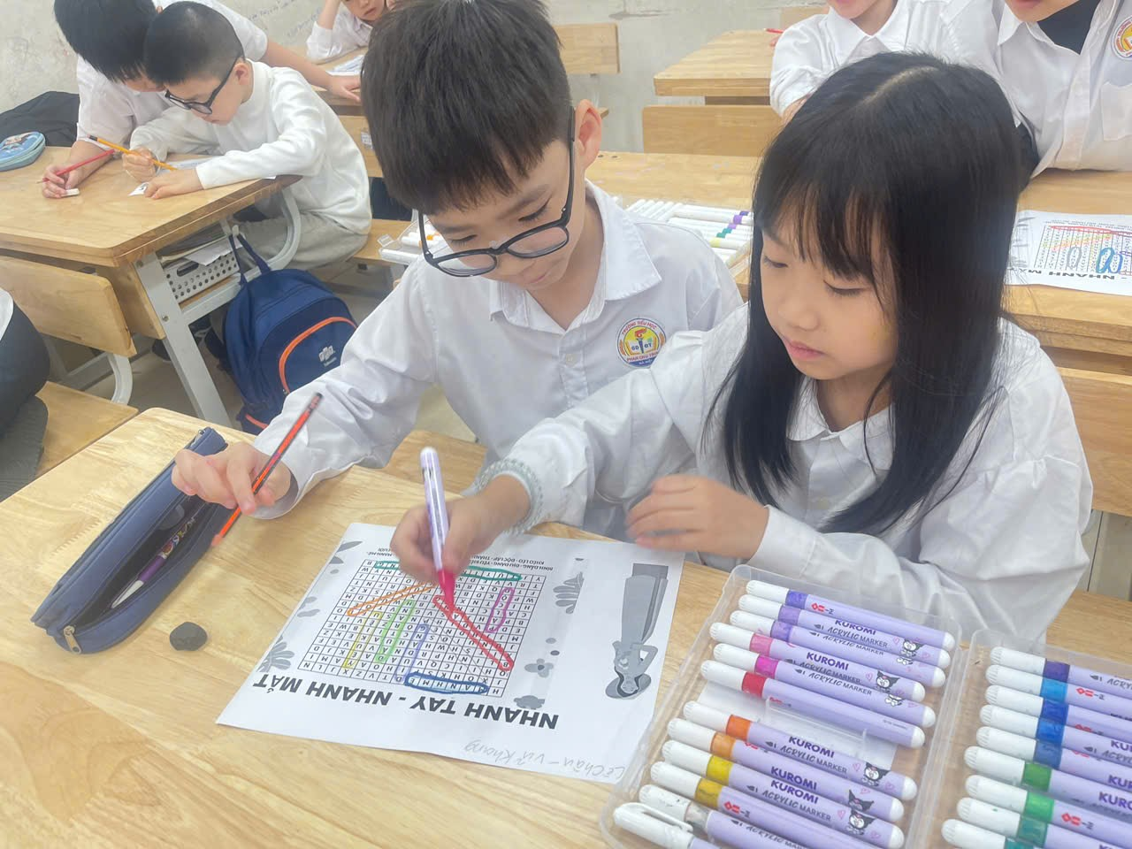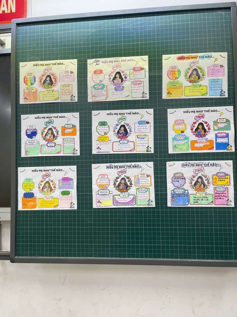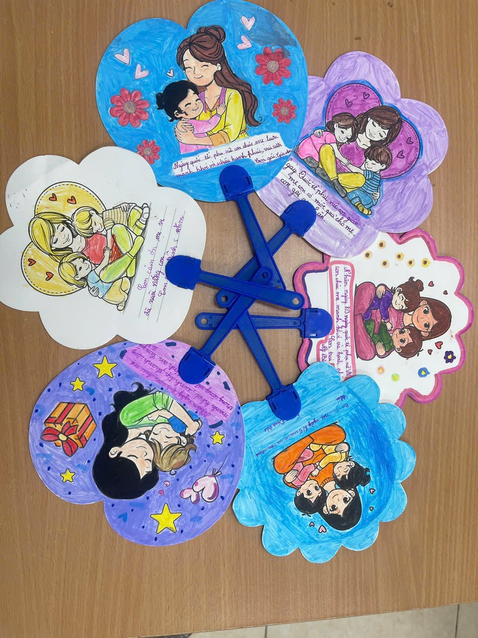 Cuối cùng là hoạt động viết và trang trí thiệp chúc mừng bà, mẹ, cô giáo. Thay vì những tấm thiệp thông thường, các bạn đã tự tay trang trí và viết lời chúc lên những chiếc quạt giấy. Mỗi chiếc quạt là một tác phẩm nghệ thuật rực rỡ sắc màu, mang theo luồng gió mát lành của tình yêu thương và những lời chúc ngây ngô nhưng đầy chân thành gửi đến bà, đến mẹ yêu.