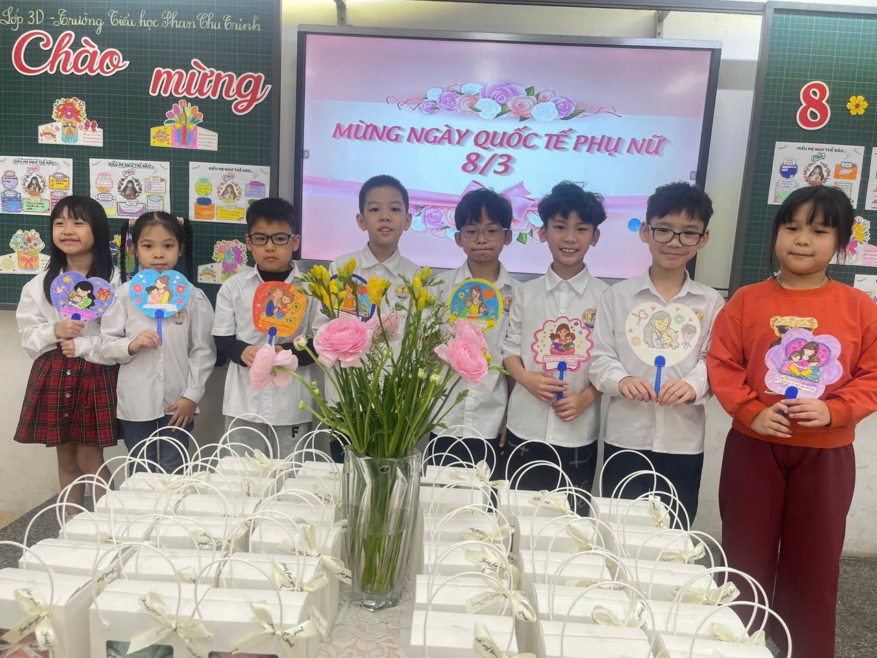 Hòa chung không khí hân hoan chào mừng Ngày Quốc tế Phụ nữ, một ngày đặc biệt để tôn vinh những người phụ nữ, chiều ngày 6/3/2026, lớp 3D trường Tiểu học Phan Chu Trinh đã tổ chức một ngày hội thú vị và ý nghĩa với chủ đề "Gói trọn yêu thương – Gửi tặng những người phụ nữ tuyệt vời"