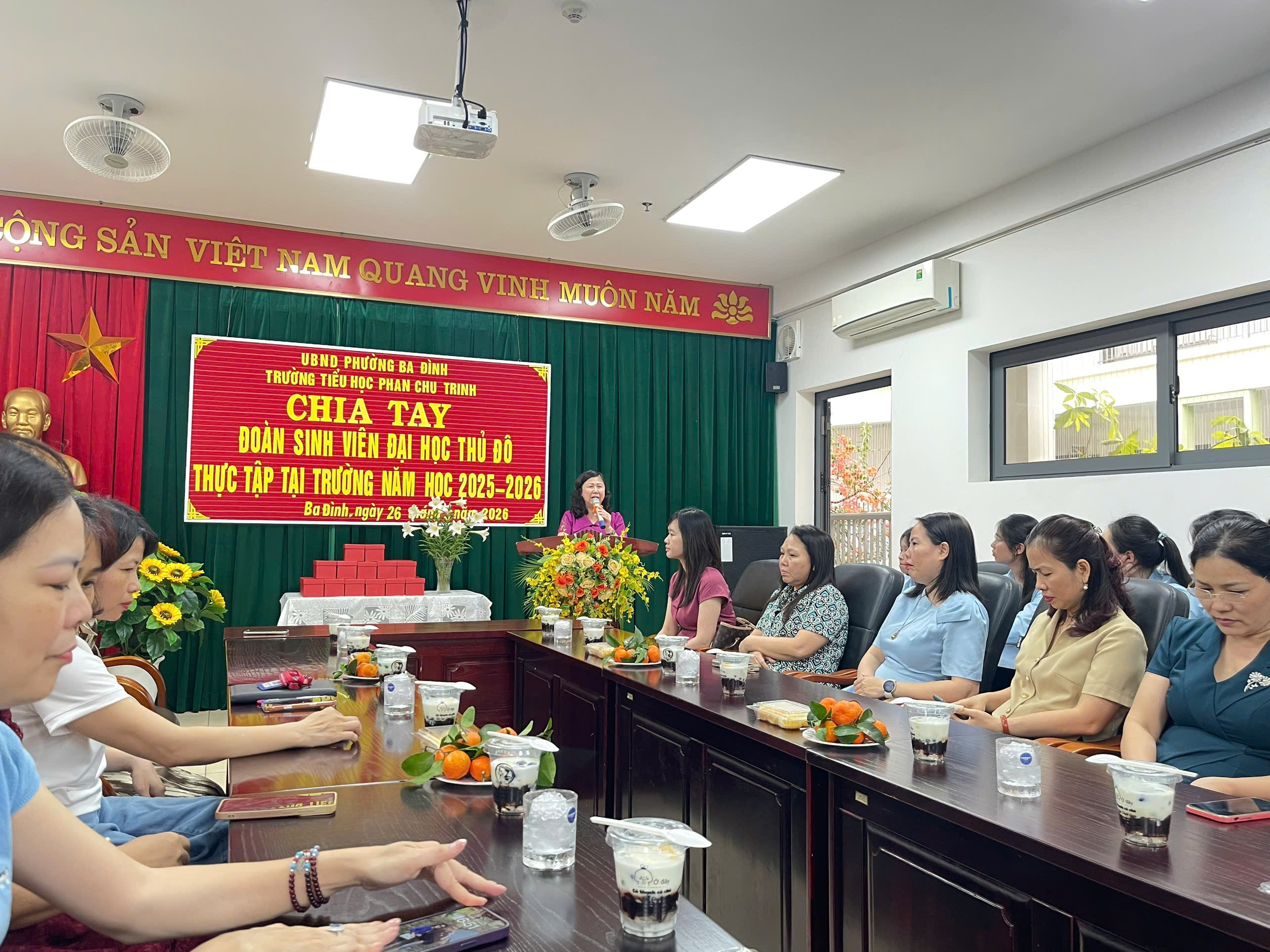 Đoàn giáo sinh xin gửi lời cảm ơn chân thành đến Ban Giám hiệu, quý thầy cô giáo và các em học sinh Trường Tiểu học Phan Chu Trinh - những người đã luôn đồng hành, hỗ trợ và tạo điều kiện tốt nhất cho chúng em trong suốt thời gian qua. Xin kính chúc quý thầy cô luôn dồi dào sức khỏe, giữ mãi ngọn lửa nhiệt huyết với sự nghiệp trồng người; chúc các em học sinh luôn chăm ngoan, học giỏi và ngày càng tỏa sáng.