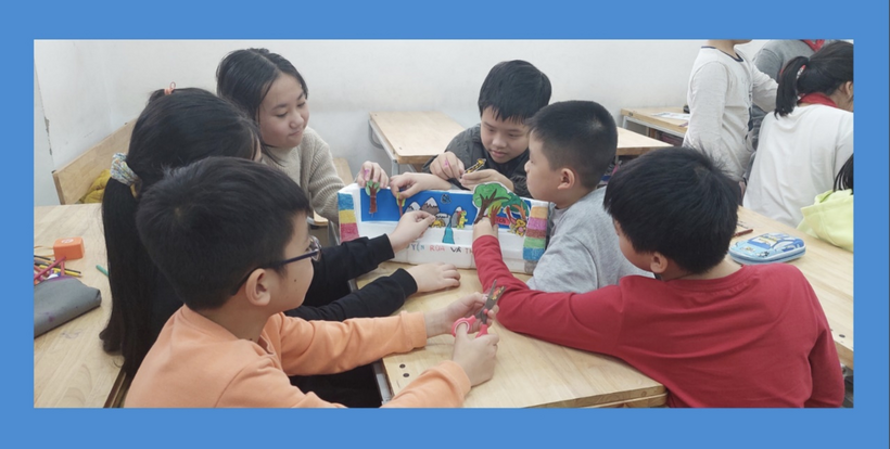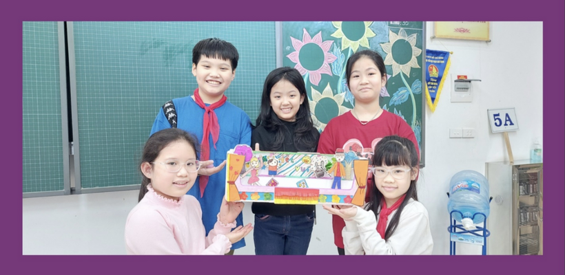 Dưới đây là những hình ảnh các hoạt động của học sinh lớp 5A – Tiểu học Phan Chu Trinh tham gia tiết học Mĩ thuật “Trang trí sân khấu – Sáng tác câu chuyện”: