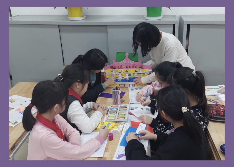 Học sinh lớp 5A trường Tiểu học Phan Chu Trinh say sưa, sáng tạo trong giờ học Mĩ thuật