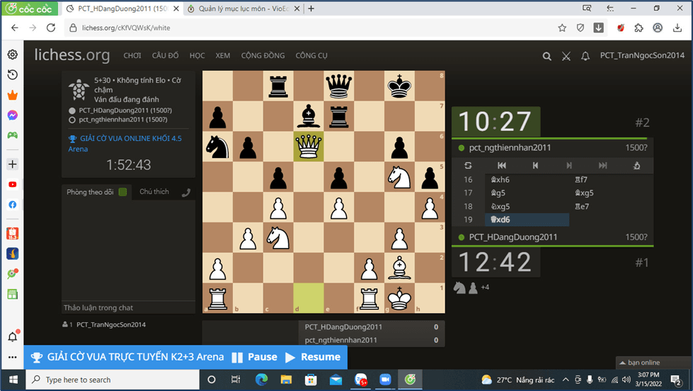 Ngày 15/03/2022, trường TH Phan Chu Trinh đã tổ chức Giải Cờ vua trực tuyến cấp trường qua Zoom với sự tham gia của 80 học sinh khối 2, 3, 4, 5.