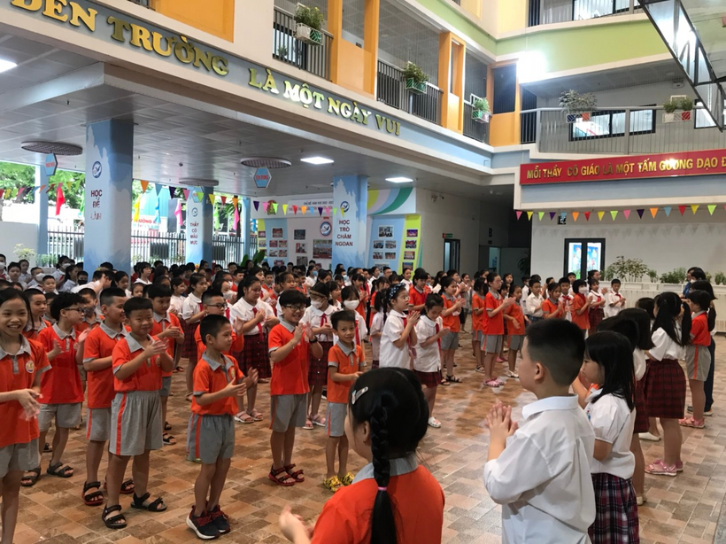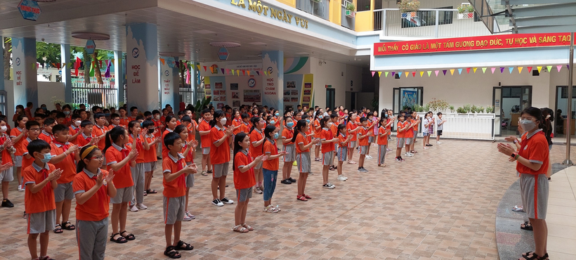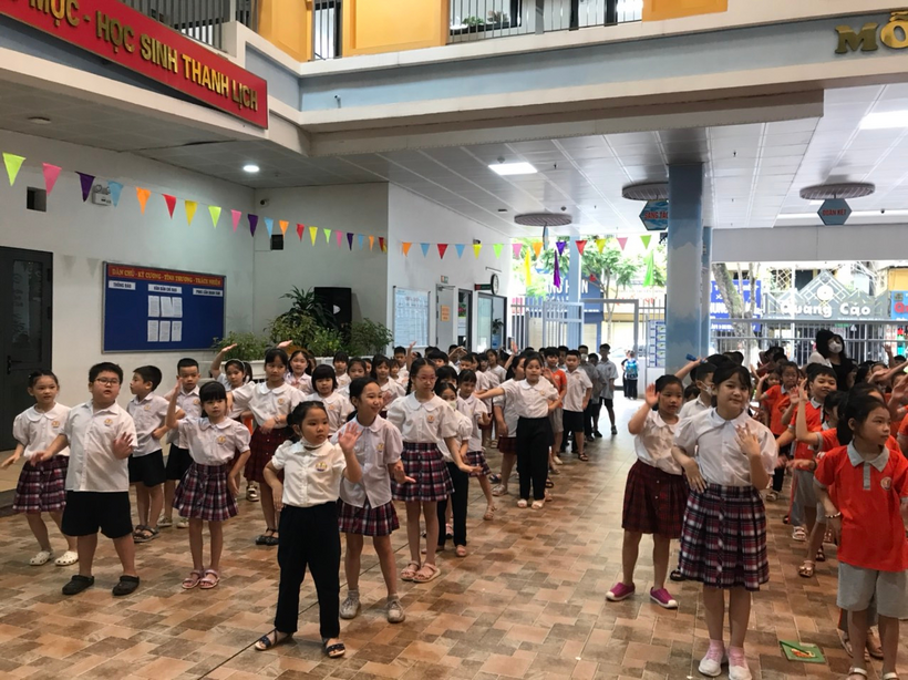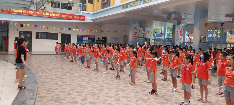 Học sinh các khối lớp trường TH Phan Chu Trinh tham gia hoạt động tập thể đầu giờ từ những tuần đầu tiên của năm học 2022-2023.
