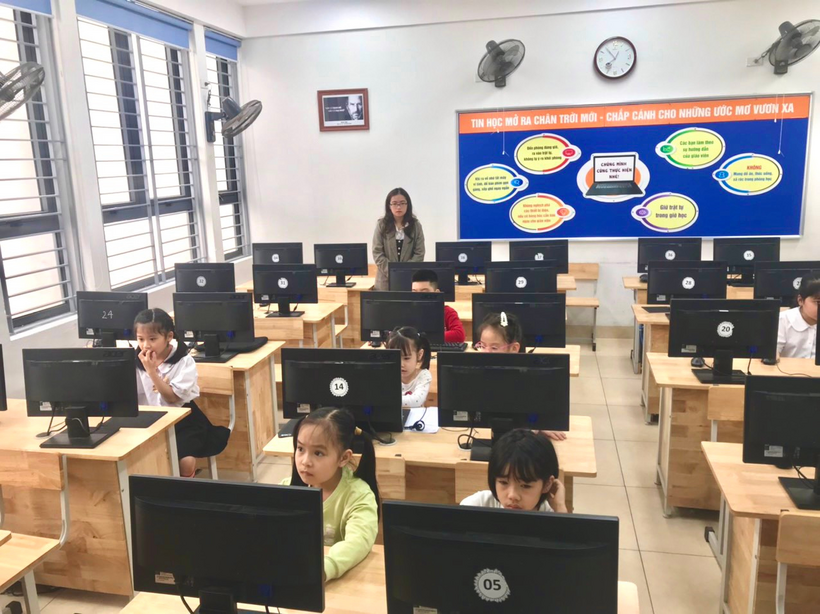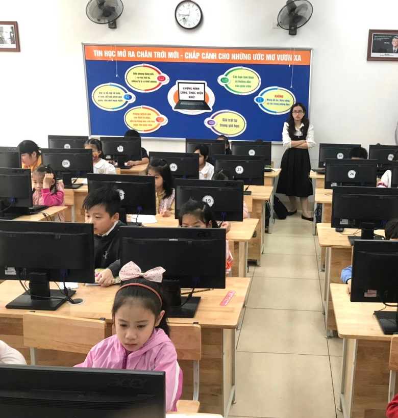 Bên cạnh đó, nhà trường cũng đã chỉ đạo, phân công nhiệm vụ giáo viên trông thi, giám sát, phối hợp tổ chức các ca thi theo kế hoạch. Đặc biệt, BGH cũng đã trực tiếp kiểm tra CSVC, đường truyền Internet trong phong Tin học để đảm bảo cuộc thi diễn ra đúng kế hoạch. Có thể nói nhà trường đã tổ chức các ca thi từ khối 1 đến khối 5 an toàn, nghiêm túc, đúng quy chế. Chúc mừng tất cả các thí sinh các khối đã hoàn thành tốt phần thi của mình. Kết quả sẽ được công bố trên trang website của nhà trường trong thời gian sắp tới.