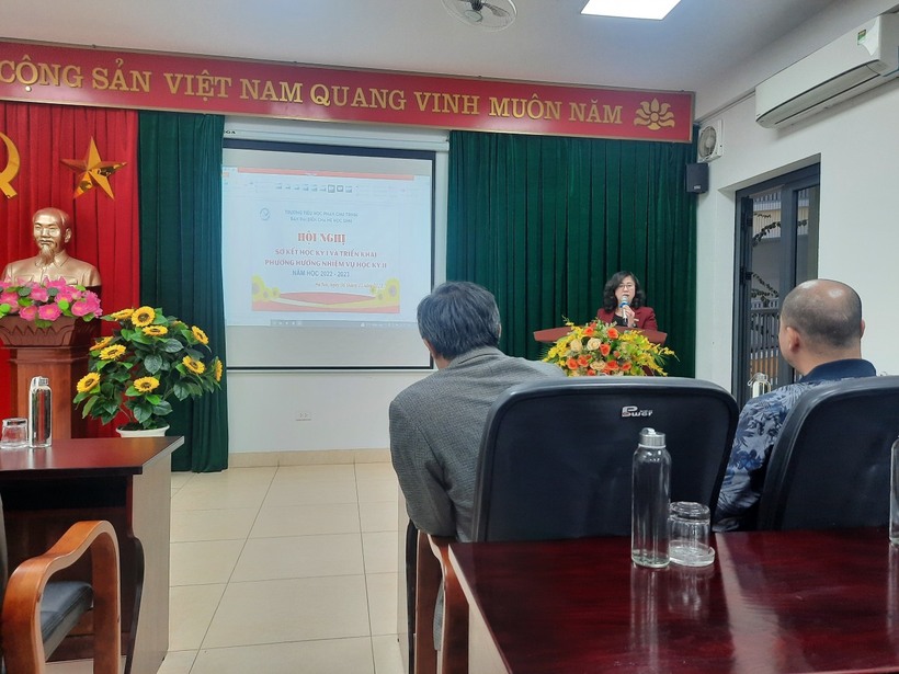 Tại Hội nghị, đồng chí HoàngThị Lan Hương – Bí thư chi bộ - Hiệu trưởng nhà trường báo cáo sơ kết học kỳ 1 và triển khai phương hướng, nhiệm vụ của học kỳ 2, năm học 2022-2023. Báo cáo đã nêu bật được sự nỗ lực cố gắng của thầy và trò nhà trường để có những thành tích đáng tự hào. Trong hội nghị, đồng chí Hoàng Thị Lan Hương – Bí thư chi bộ - Hiệu trưởng nhà trường cảm ơn sự đồng hành, phối hợp, những đóng góp to lớn của các bậc phụ huynh. Chứng kiến những nỗ lực vượt bậc và xuất sắc của thầy, trò trong phong trào dạy và học cũng như các mặt hoạt động của nhà trường trong học kỳ 1, các bác phụ huynh rất phấn khởi, cảm động. Bác Phạm Quang Thiện –Trưởng Ban Đại diện cha mẹ học sinh trường trân trọng cảm ơn các thầy cô giáo, chúc mừng thành tích của nhà trường, chúc nhà trường hoàn thành Xuất sắc nhiệm vụ năm học 2022-2023. Các ý kiến phát biểu trong hội nghị đều ghi nhận và đánh giá cao sự nhiệt huyết, tận tâm của các thầy cô giáo trong việc giáo dục trẻ. Toàn thể phụ huynh bày tỏ sự yên tâm, tin tưởng khi con em được học tập và sinh hoạt trong môi trường thật an toàn và hạnh phúc.