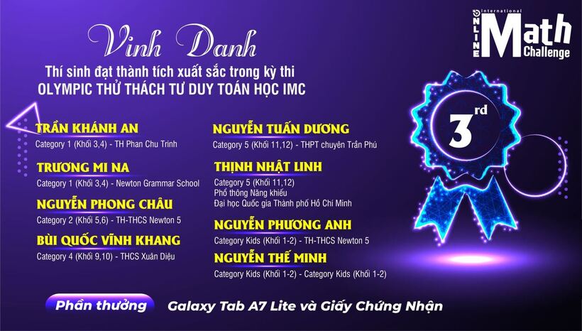 🥉1 giải Ba - Phần thưởng là Galaxy Tab A7 Lite