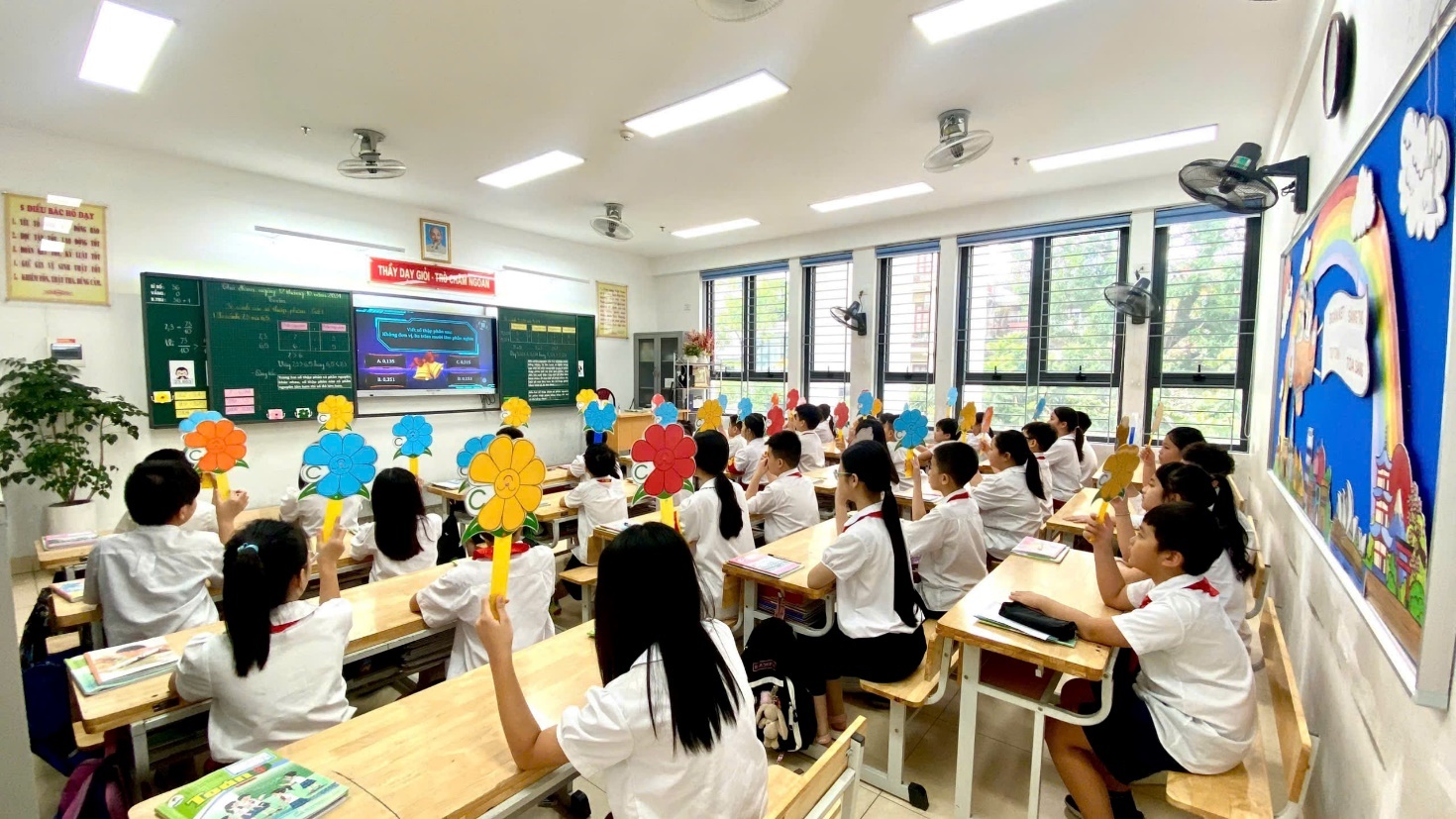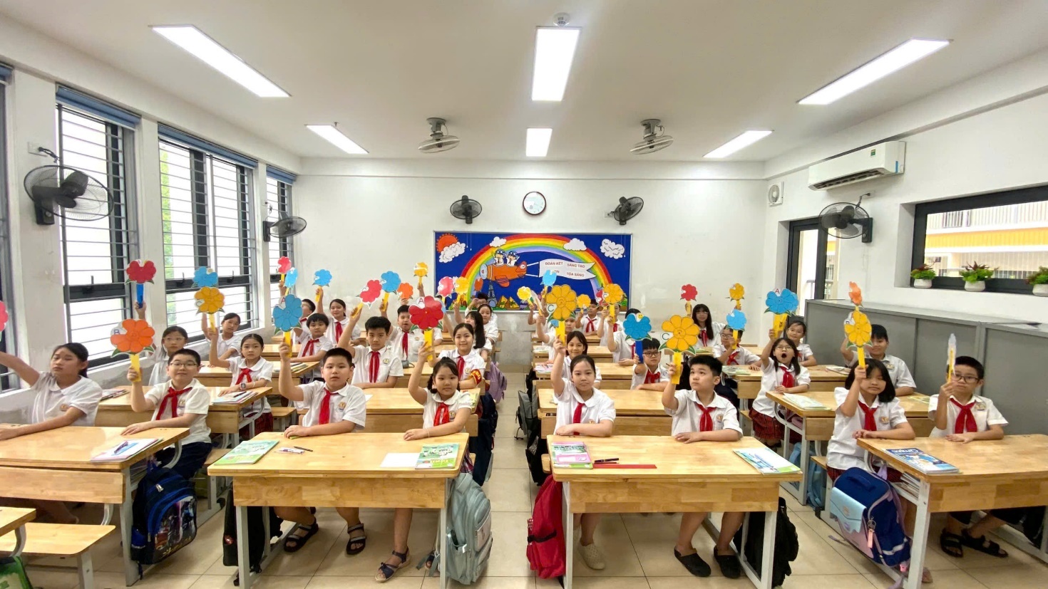 Học sinh lớp 5D tích cực tham gia trò chơi học tập Phong thư nhiệm màu