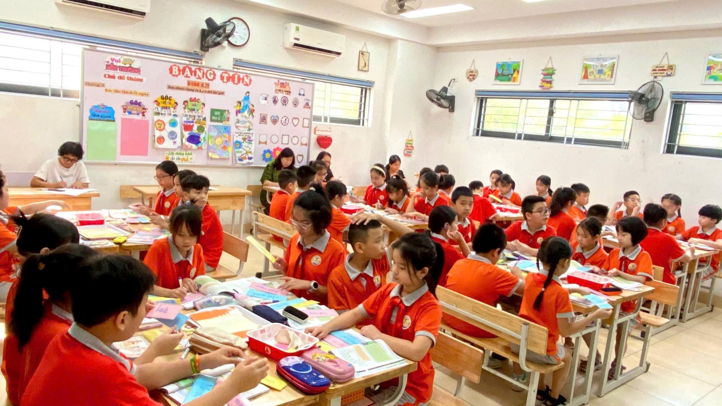 Học sinh lớp 5A sôi nổi tham gia làm việc nhóm