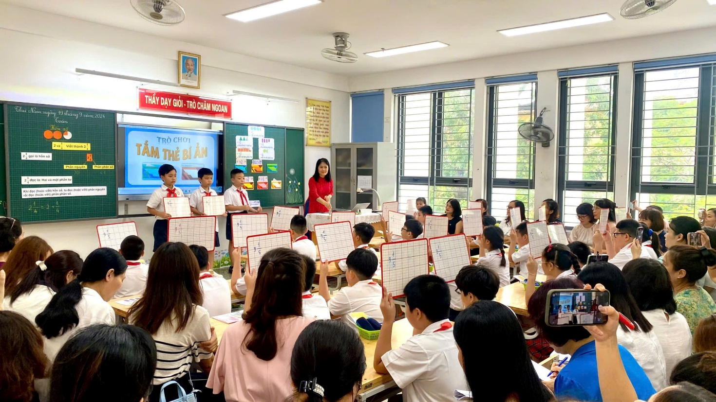 Học sinh lớp 5D chủ động, tích cực tham gia trò chơi Tấm thẻ bí ẩn