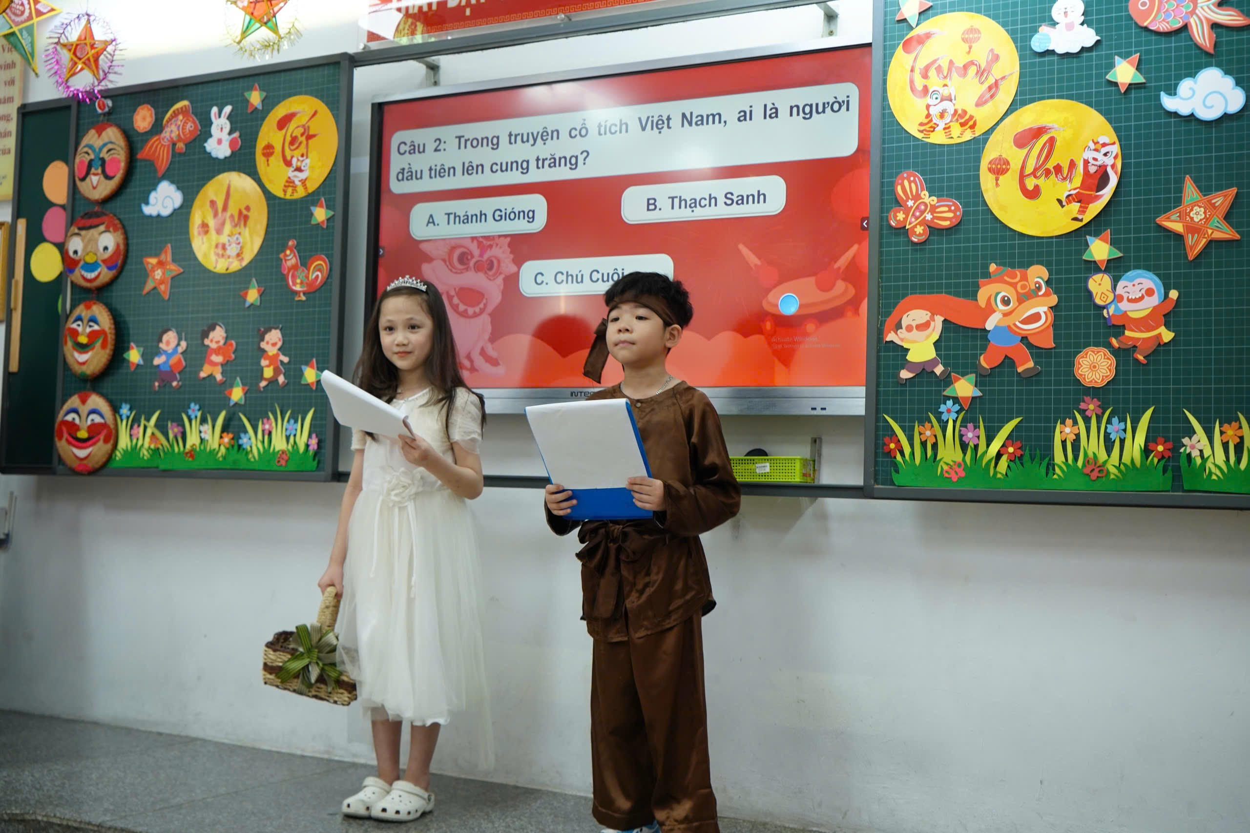 Điểm nhấn vô cùng thú vị và bất ngờ của chương trình năm nay chính là sự xuất hiện của hai người dẫn chương trình "cây nhà lá vườn" - bạn Nguyễn Phúc Lâm trong vai Chú Cuội hóm hỉnh và bạn Trần Quỳnh My trong vai Chị Hằng duyên dáng. Bằng sự tự tin, thông minh và lối dẫn dắt tự nhiên, hai MC nhí đã đưa cả lớp đi từ bất ngờ này đến bất ngờ khác, tạo nên một không khí gần gũi, vui vẻ ngay từ những phút đầu tiên. Hai MC tài năng đã đưa cả lớp vào một không gian cổ tích đầy màu sắc, kết nối các hoạt động một cách uyển chuyển và cuốn hút.