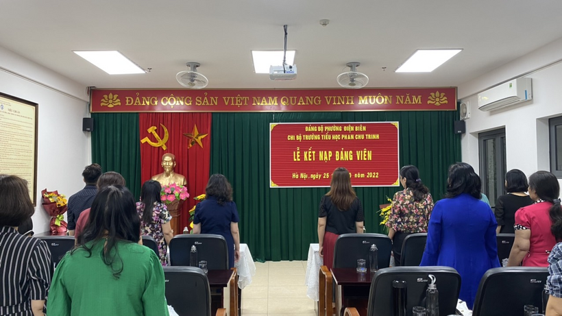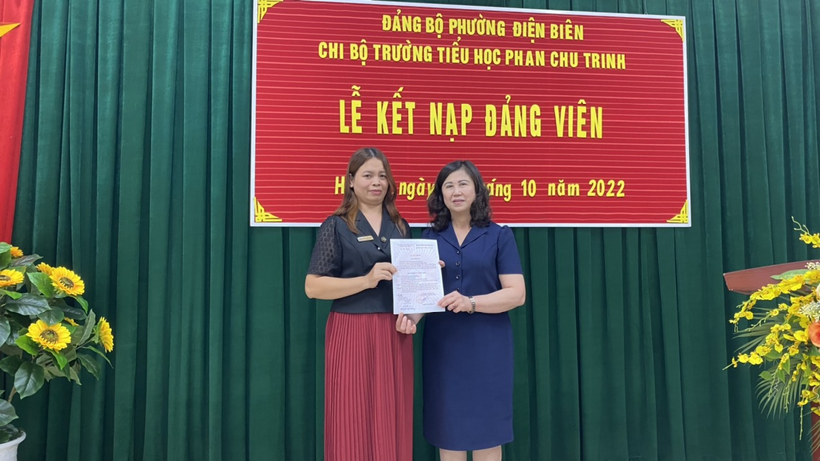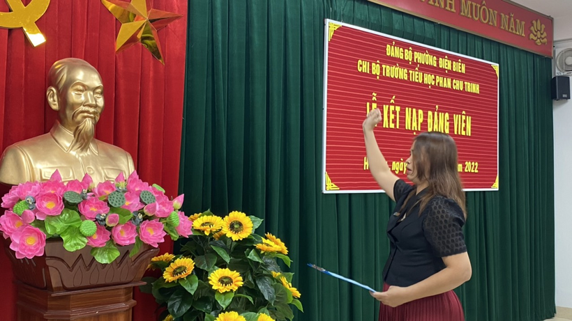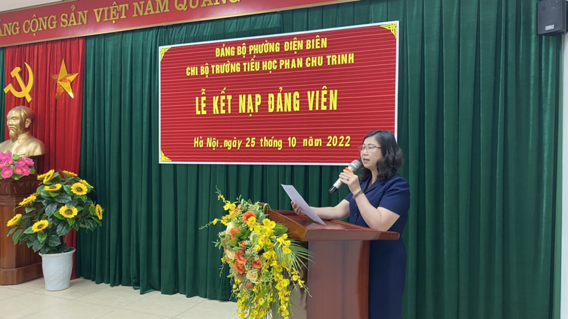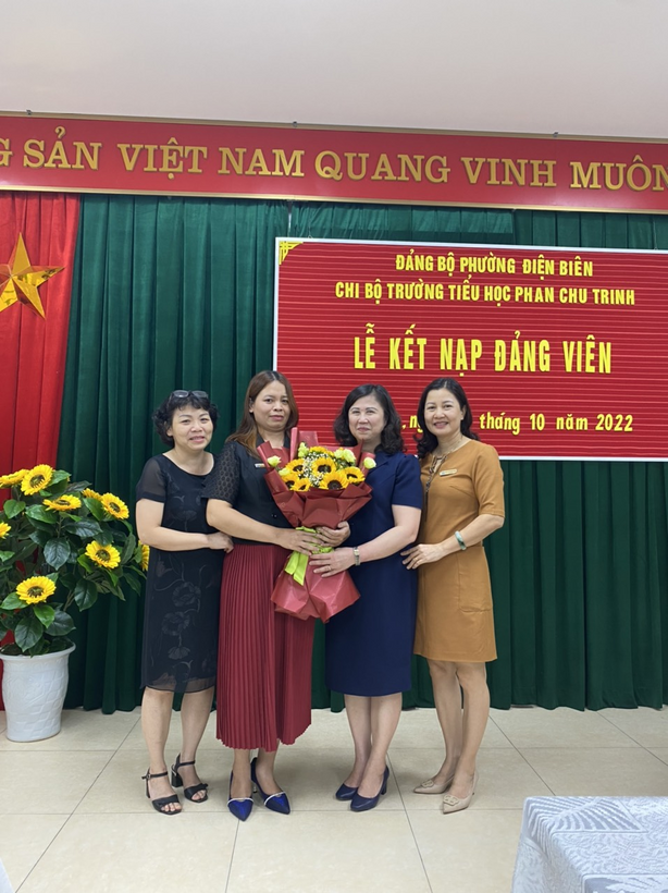 Thực hiện Nghị quyết Đại hội Chi bộ Trường tiểu học Phan Chu Trinh nhiệm kì 2022-2025 về việc phát triển đảng viên. Được sự nhất trí của Đảng uỷ Phường Điện Biên, chiều ngày ngày 25/10/2022, Chi bộ Trường tiểu học Phan Chu Trinh đã long trọng tổ chức lễ kết nạp đảng viên mới đối với quần chúng ưu tú Đoàn Hồng Giang, giáo viên trường Tiểu học Phan Chu Trinh. Đây là sự kiện có ý nghĩa quan trọng trong công tác xây dựng Đảng, góp phần phát triển, nâng cao chất lượng và sức chiến đấu của Chi bộ nhà trường.
