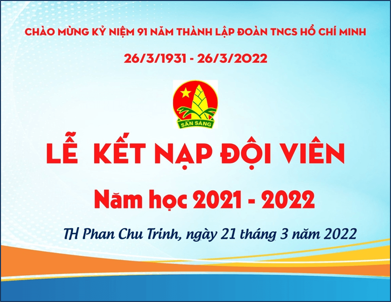 Thực hiện Kế hoạch Công tác Đội và phong trào thiếu nhi năm học 2021-2022, thực hiện Công văn  174 –CV/HĐĐBĐ của Hội đồng Đội quận Ba Đình về việc hướng dẫn kiện toàn Ban chỉ huy Liên đội, Chi đội, và Lễ Kết nạp Đội viên năm học 2021-2022; hòa chung không khí tưng bừng của tuổi trẻ cả nước nhân dịp kỉ niệm 91 năm ngày thành lập Đoàn TNCS Hồ Chí Minh (26/3/1931-26/3/2022), hướng tới chào mừng Đại hội Đoàn TNCS Hồ Chí Minh các cấp; được sự nhất trí của Ban Giám hiệu nhà trường, Liên đội trường TH Phan Chu Trinh đã tổ chức Lễ Kết nạp Đội viên cho các em thiếu niên, nhi đồng tiêu biểu và có nhiều thành tích trong học tập và rèn luyện học kỳ I.