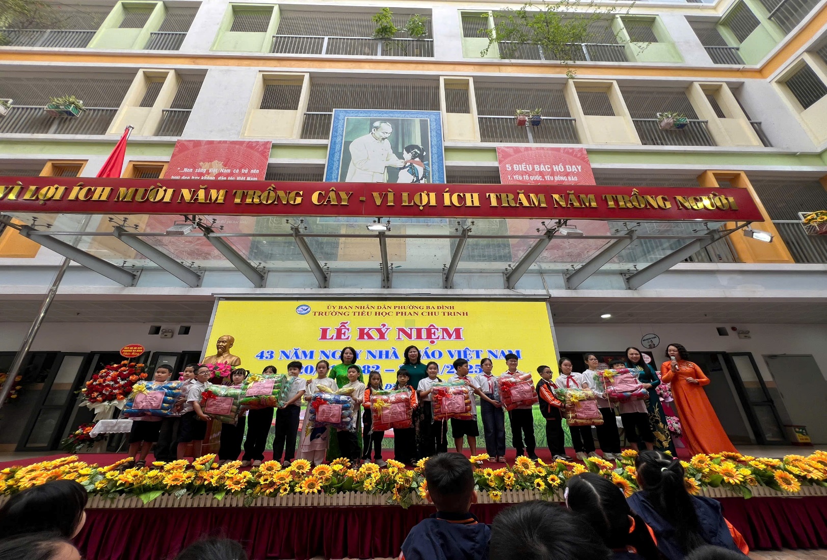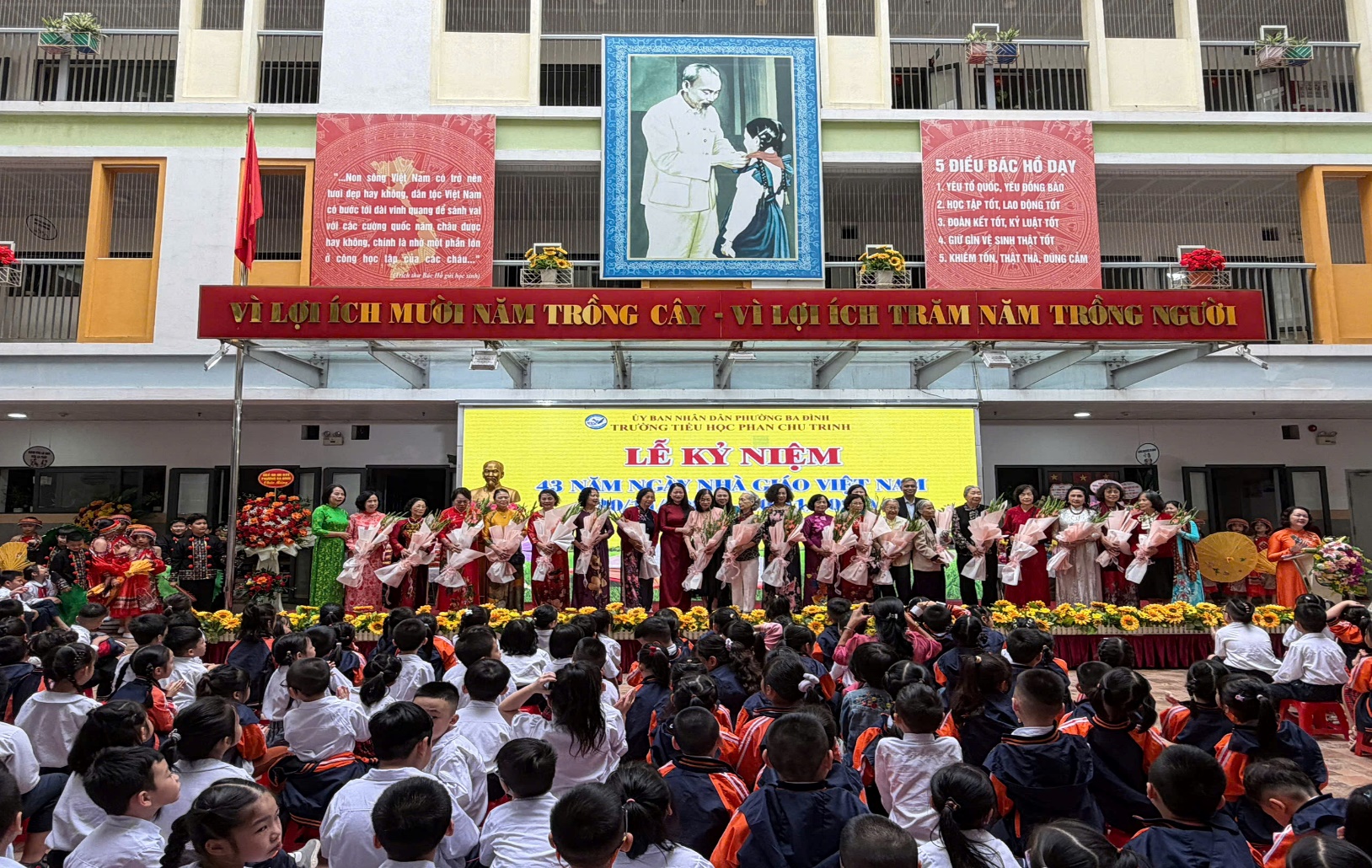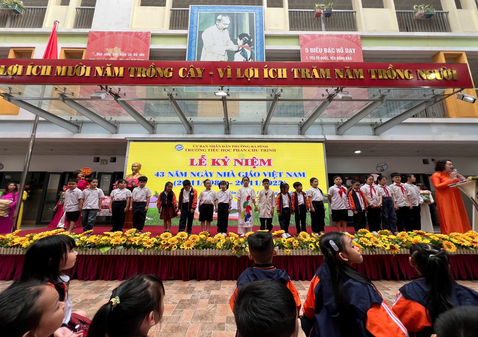 Trong buổi lễ kỷ niệm, đồng chí Hoàng Thị Lan Hương - Bí thư Chi bộ - Hiệu trưởng nhà trường đã ôn lại truyền thống cao quý của nghề dạy học và điểm lại những thành tích nổi bật của nhà trường trong năm học 2024 – 2025, trường Tiểu học Phan Chu Trinh được UBND thành phố Hà Nội tặng danh hiệu Tập thể Lao động Xuất sắc; đầu năm học 2025 – 2026, trường tiếp tục được nhận Bằng khen của UBND Thành phố Hà Nội vì có thành tích xuất sắc trong các hoạt động kỷ niệm 80 năm Cách mạng Tháng Tám và Quốc khánh 2/9. Trải qua 80 năm xây dựng và phát triển, các thầy cô giáo và học sinh nhà trường luôn nỗ lực, phát huy truyền thống quý báu của các thế hệ nhà giáo đi trước quyết tâm thi đua dạy tốt, học tốt, khẳng định vị thế: Ngôi Trường Tiểu học Phan Chu Trinh luôn là địa chỉ đỏ tin cậy trong lòng phụ huynh học sinh Thủ đô.