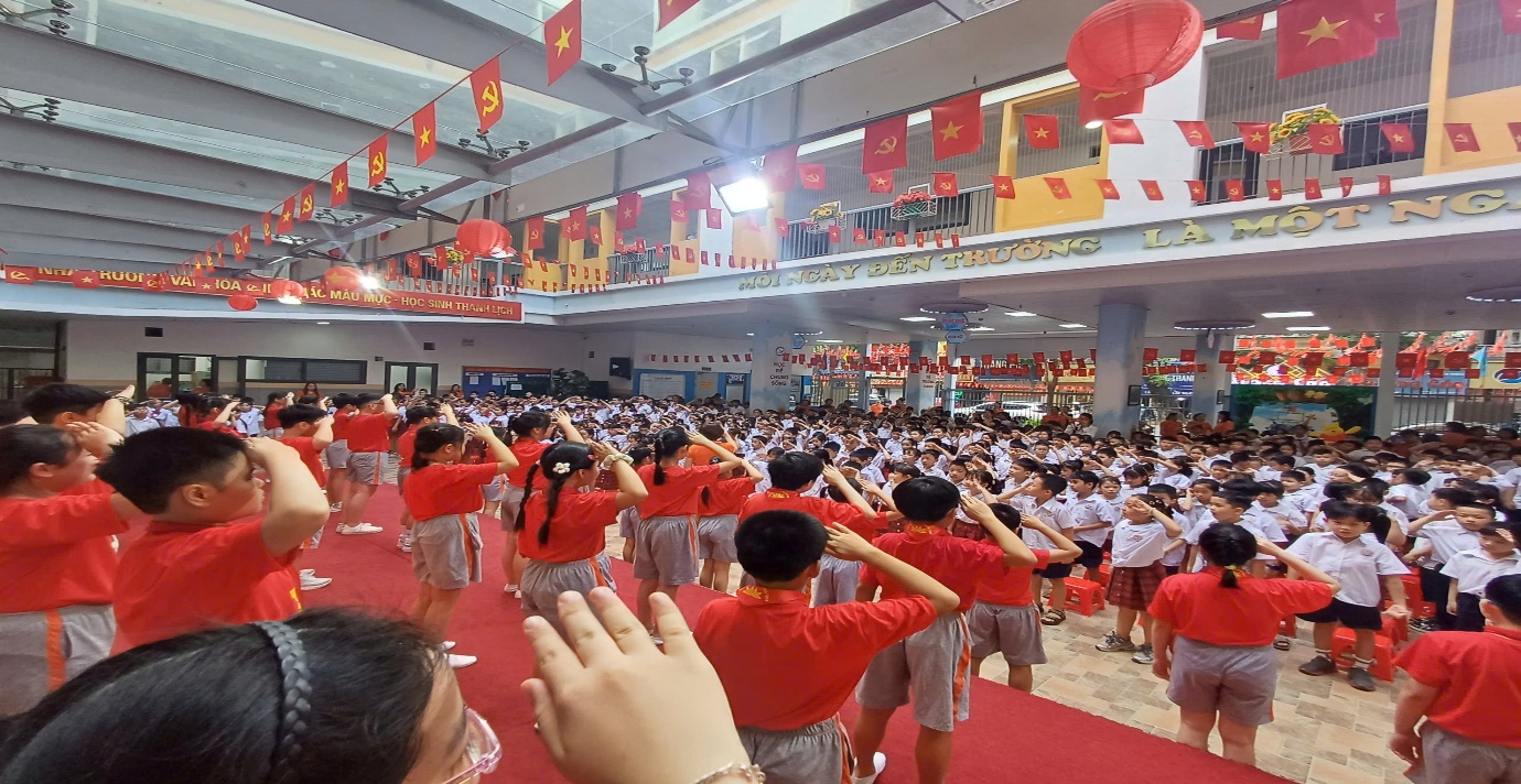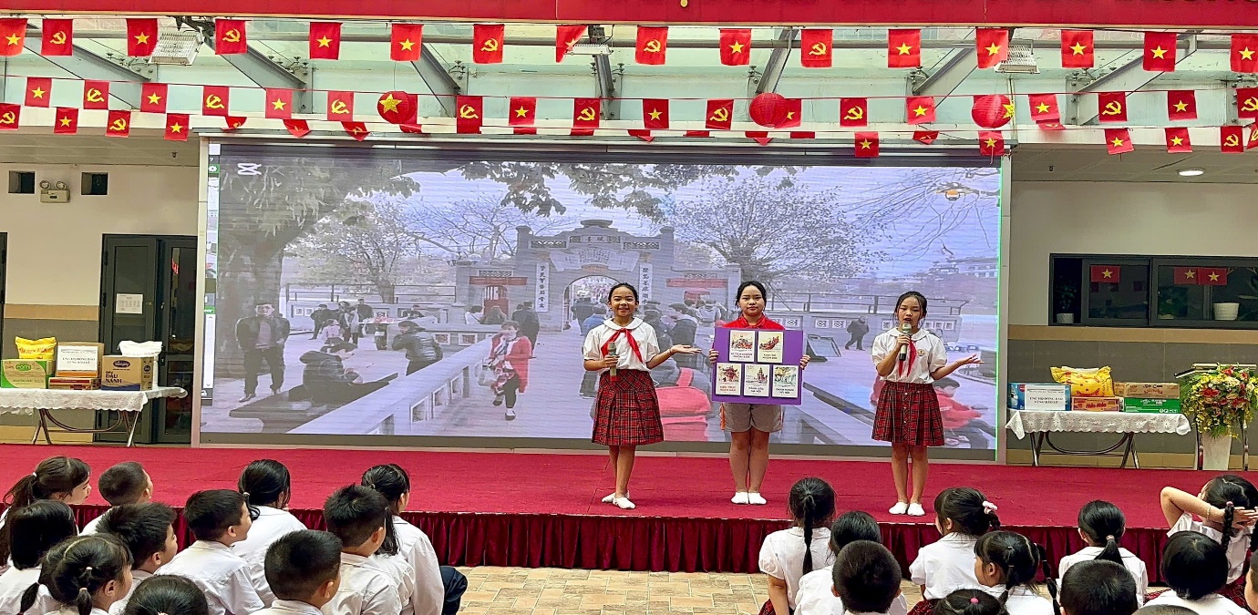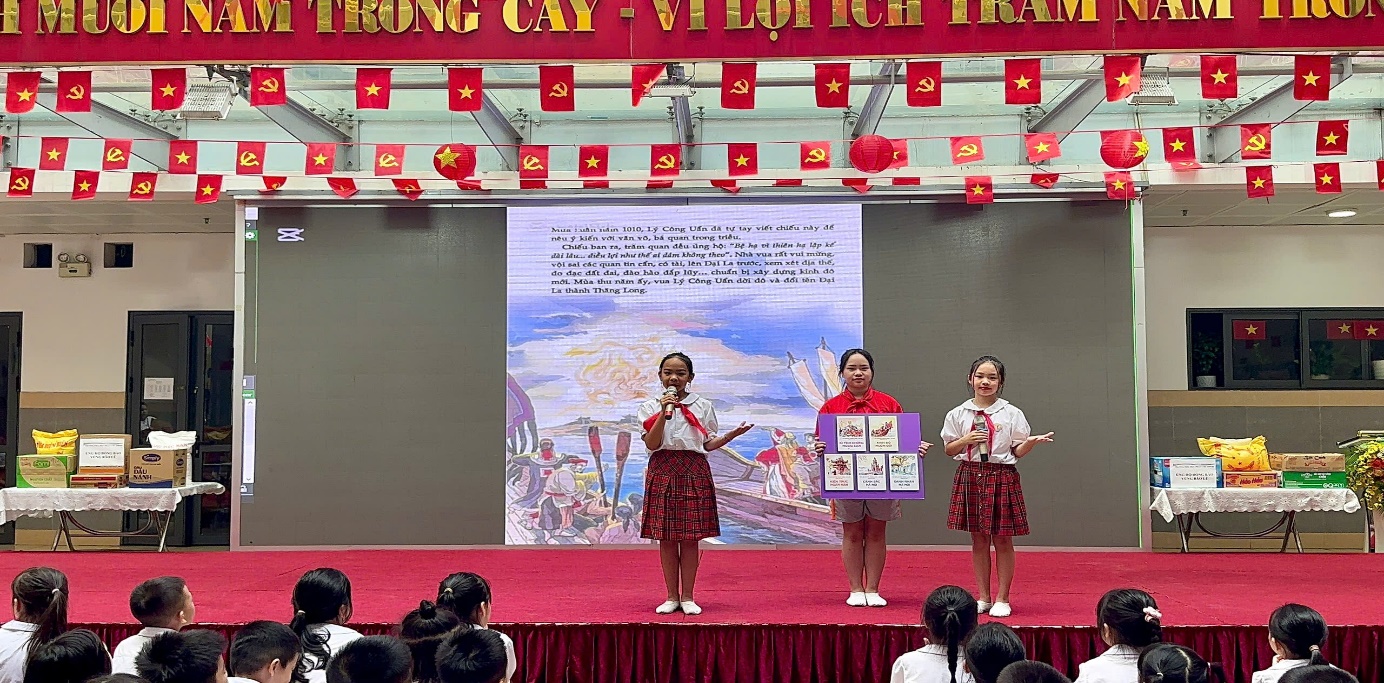 Vào sáng thứ Hai đầu tuần, trong không khí trang nghiêm và ấm áp của buổi chào cờ, toàn thể thầy cô giáo và học sinh nhà trường đã cùng nhau tham dự buổi giới thiệu bộ sách “Kể chuyện Thăng Long – Hà Nội” – một hoạt động ý nghĩa do Thư viện trường phối hợp cùng Đội tuyên truyền măng non lớp 5D tổ chức.