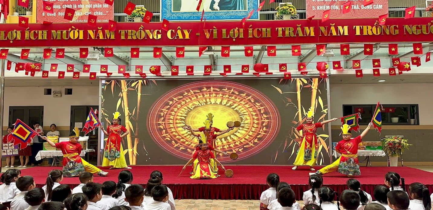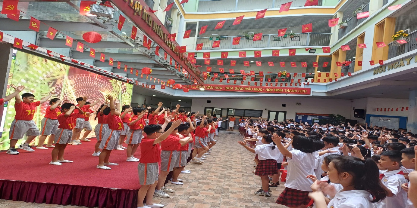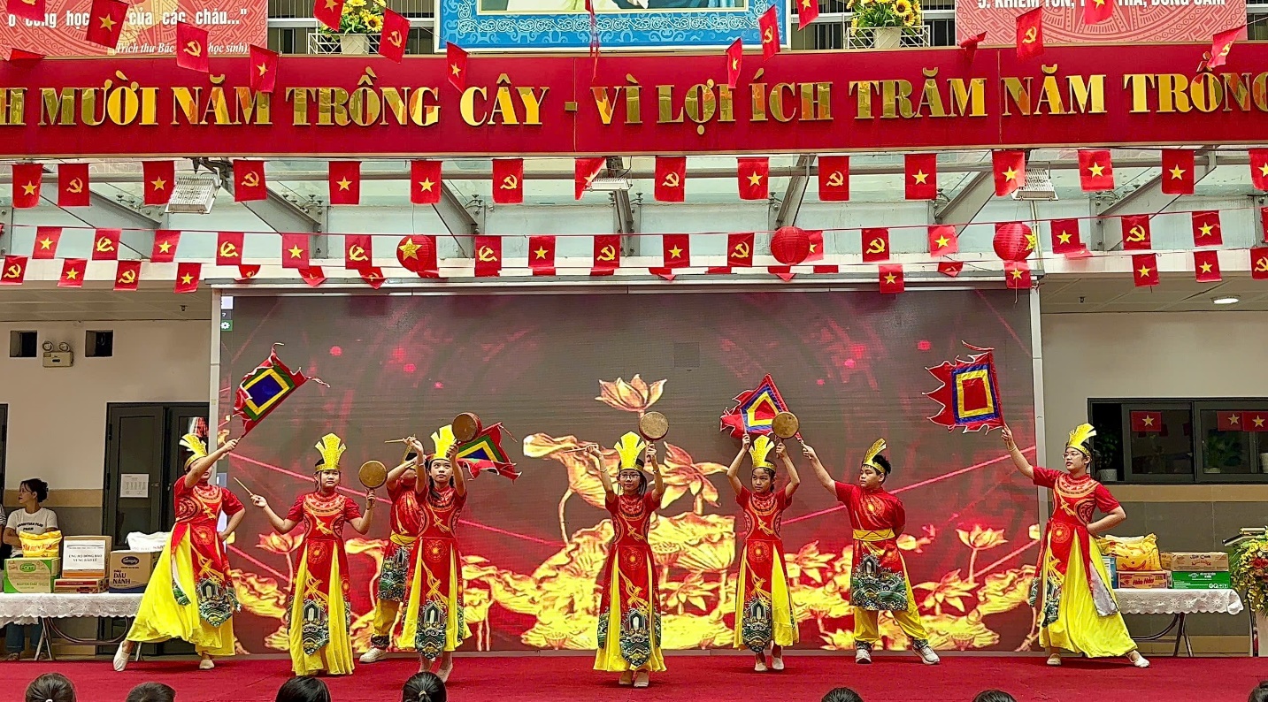 Đặc biệt, xen kẽ trong chương trình là hai tiết mục văn nghệ đặc sắc. Tiết mục đầu tiên múa mashup “Đất nước lời ru, Nam quốc sơn hà” mang âm hưởng hào hùng thể hiện niềm tự hào dân tộc, lòng biết ơn sâu sắc với các thế hệ cha ông đã hy sinh vì độc lập, tự do của Tổ quốc; tiết mục thứ hai nhảy đồng diễn “Việt Nam - Tự hào viết tiếp tương lai” vang lên mạnh mẽ với nhịp điệu sôi nổi, thể hiện ý chí kiên cường và tinh thần bất khuất của con người Việt Nam trong hành trình dựng xây và bảo vệ Tổ quốc. Hai phần biểu diễn đã thổi bùng bầu không khí sôi nổi, đồng thời khơi dậy trong lòng mỗi học sinh niềm tự hào là thế hệ trẻ đang tiếp bước cha anh viết tiếp những trang sử vàng của dân tộc.