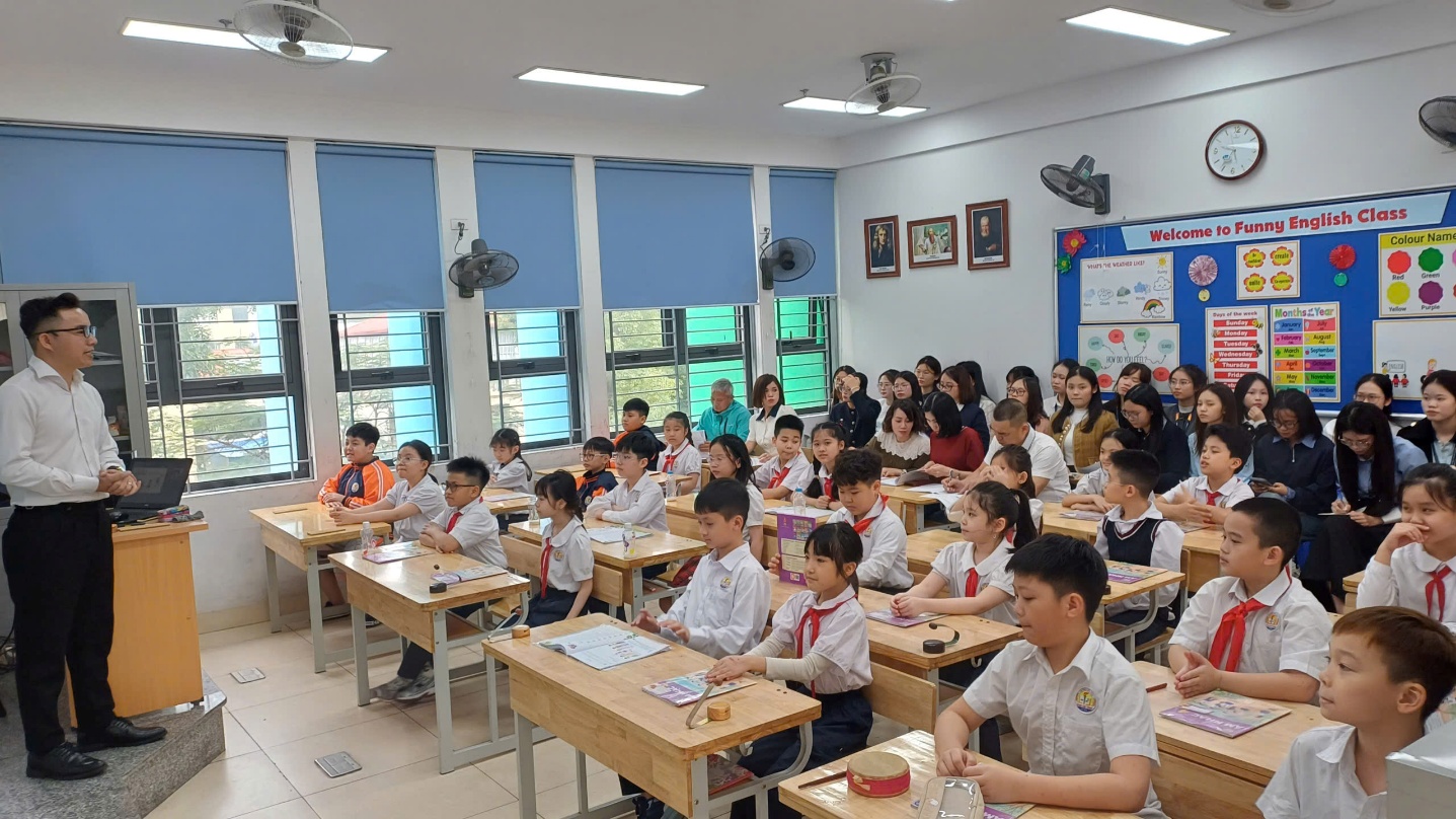 Học sinh lớp 4E hăng say biểu diễn trong tiết chuyên đề môn Âm nhạc.