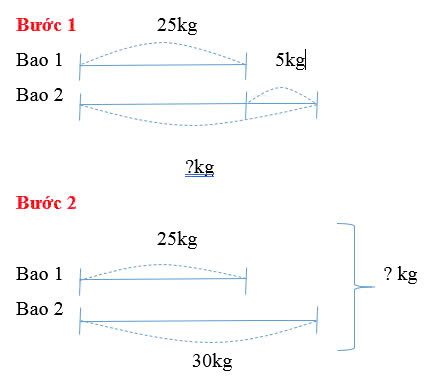 Bước 2: Bao thứ nhất có 25kg gạo, bao thứ hai có 30kg gạo. Hỏi cả hai bao có bao nhiêu ki – lô – gam gạo?