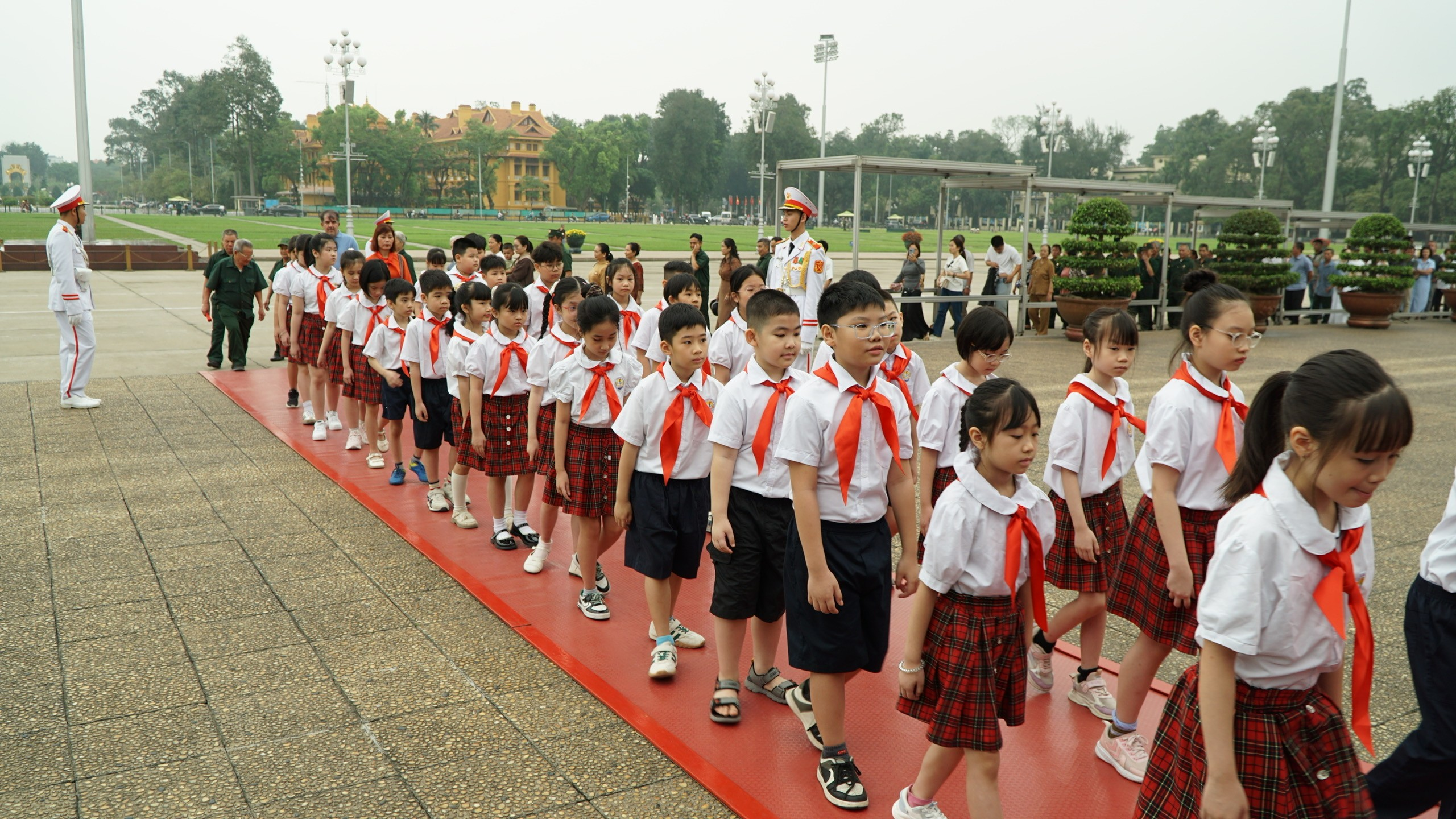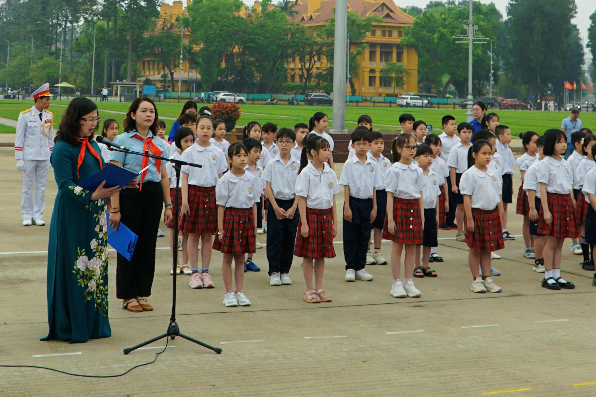 Đứng quan sát các học trò, những “người gieo hạt” không khỏi trào dâng một cảm xúc khó tả. Có cảm xúc lắng lại, có cảm xúc hân hoan khi chứng kiến khoảnh khắc “các mầm non” vươn mình đón nắng. Mới ngày nào các em còn bỡ ngỡ, rụt rè nắm tay cô, vậy mà giờ đây đã tự tin đứng giữa quảng trường lịch sử, dõng dạc báo công dâng Người. Sự trưởng thành của các em chính là món quà vô giá, là động lực để những người thầy tiếp tục tận tâm với sự nghiệp trồng người.