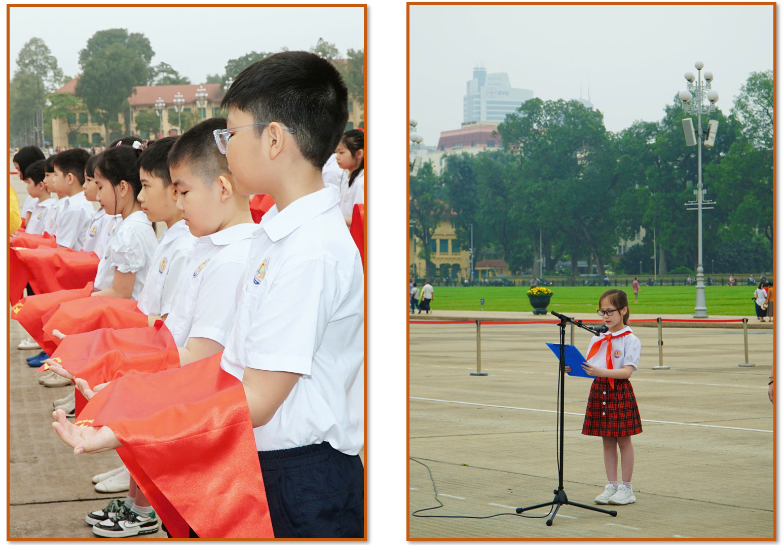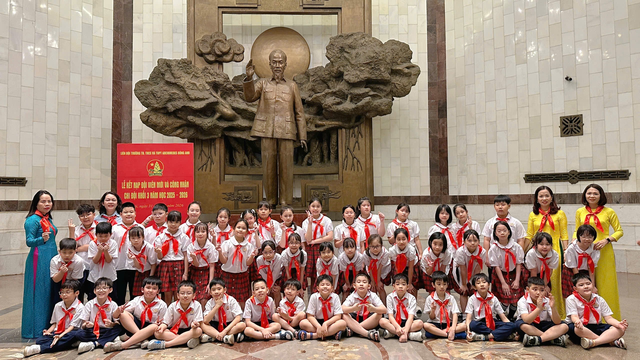 Giữa không gian thiêng liêng của Quảng trường Ba Đình lịch sử, những “bông hoa” rực rỡ nhất trong vườn hoa Khối lớp 3 của trường Tiểu học Phan Chu Trinh đã chính thức mang trên vai chiếc khăn quàng đỏ thắm. Buổi lễ Báo công và Kết nạp Đội viên không chỉ là một dấu mốc trong quá trình trưởng thành của các em mà còn là khoảnh khắc đầy xúc động của những người thầy khi chứng kiến các con học sinh thân yêu lớn lên từng ngày.