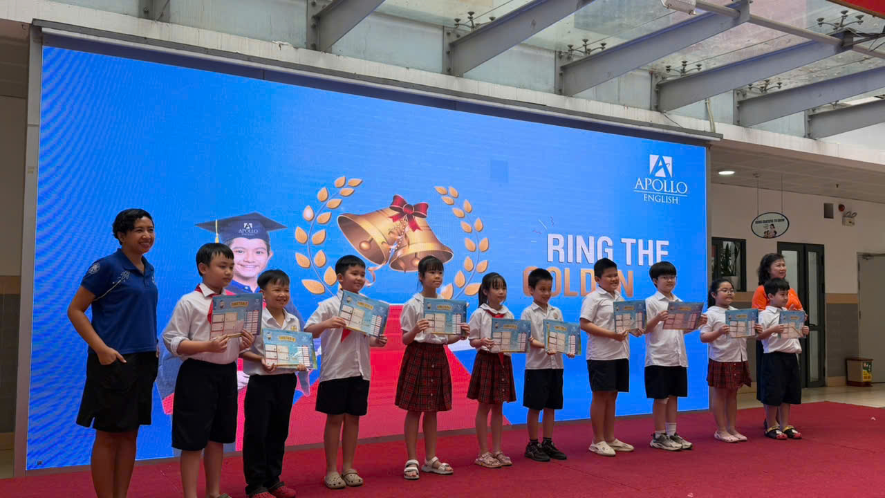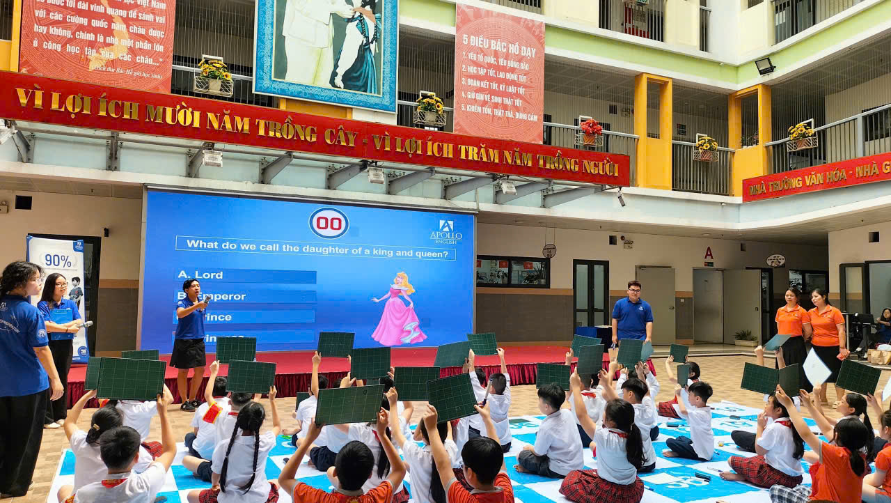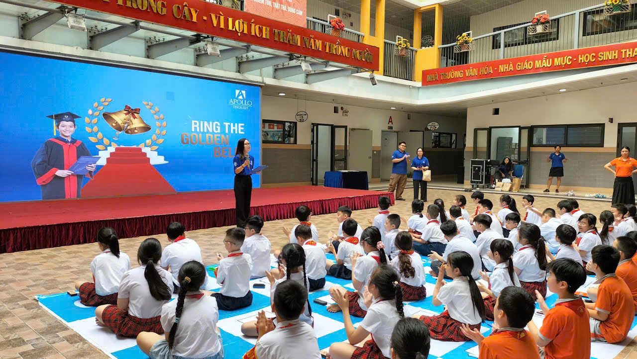 Sáng nay, Trường Tiểu học Phan Chu Trinh đã phối hợp cùng Trung tâm Tiếng Anh Apollo tổ chức cuộc thi “Rung chuông vàng” dành cho học sinh khối 3 và khối 4. Chương trình diễn ra trong không khí sôi nổi, thu hút sự tham gia của đông đảo học sinh cùng sự cổ vũ nhiệt tình từ thầy cô và các bạn.