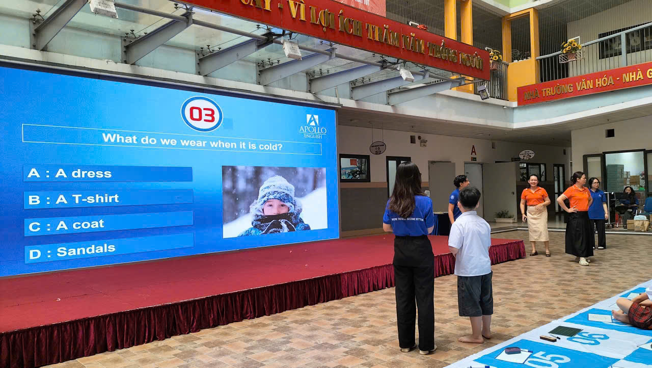 Cuộc thi được tổ chức với nội dung xoay quanh kiến thức Tiếng Anh, nhằm giúp học sinh củng cố và phát triển kỹ năng ngôn ngữ một cách tự nhiên, sinh động.Mỗi lớp lựa chọn 10 học sinh tham gia, tạo nên một sân chơi bổ ích, nơi các em được thể hiện khả năng Tiếng Anh và sự nhanh nhạy của mình.