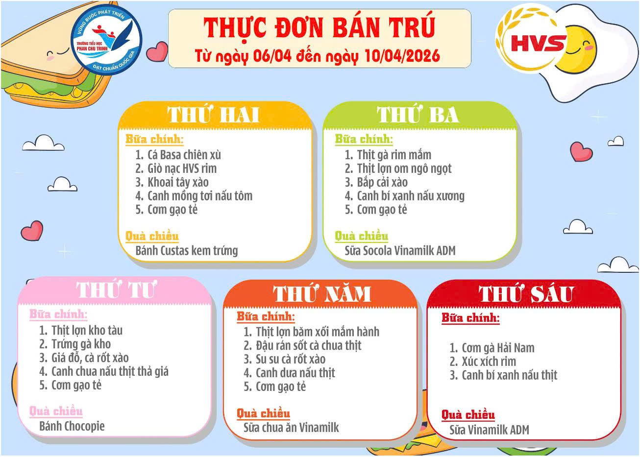 Thực đơn Bán trú tuần 29 năm học 2025 - 2026