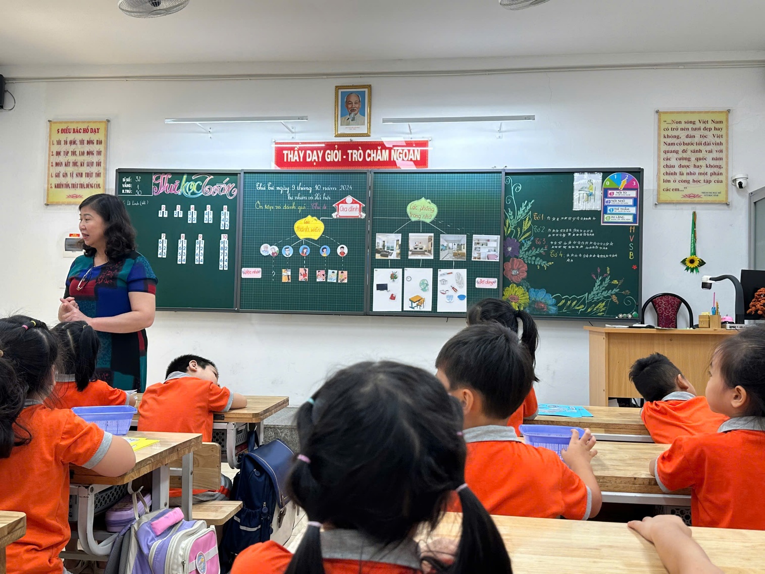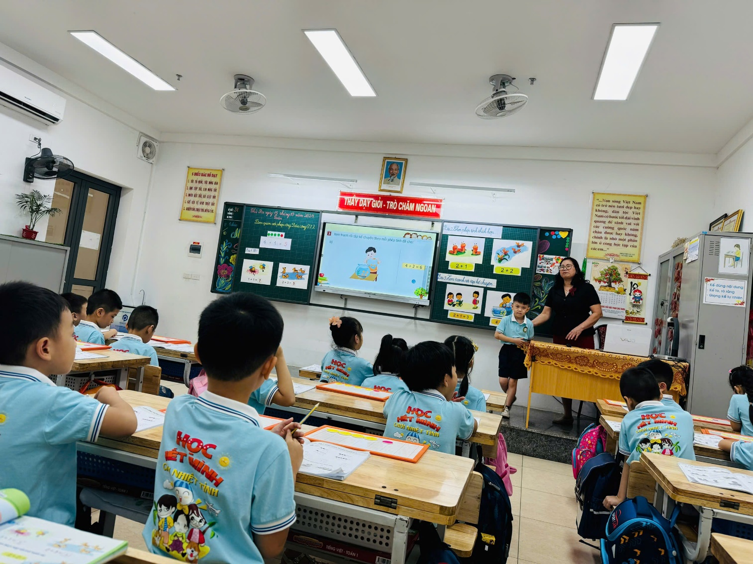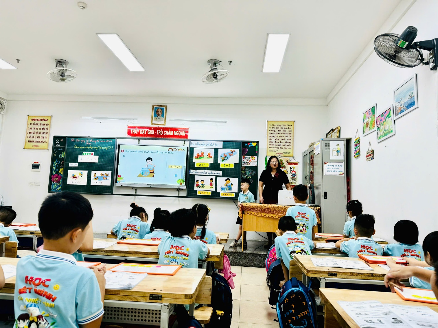 Với tiết học “Làm quen với phép cộng, dấu cộng”, cô giáo Hoàng Thị Thu Hà đã mở ra cho học sinh lớp 1B cánh cửa đầu tiên vào thế giới các phép tính. Bằng phương pháp dạy học trực quan sinh động, cô Hà đã giúp học sinh dễ dàng nắm bắt khái niệm “thêm vào” và hiểu ý nghĩa của dấu cộng trong phép tính.