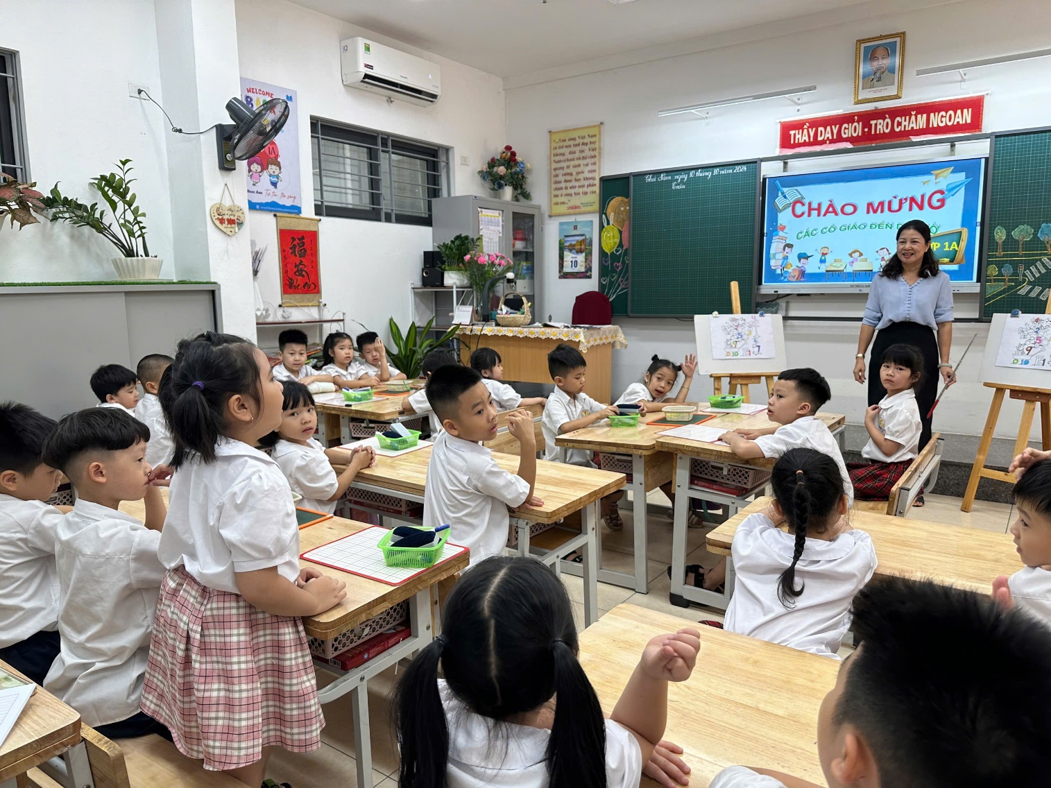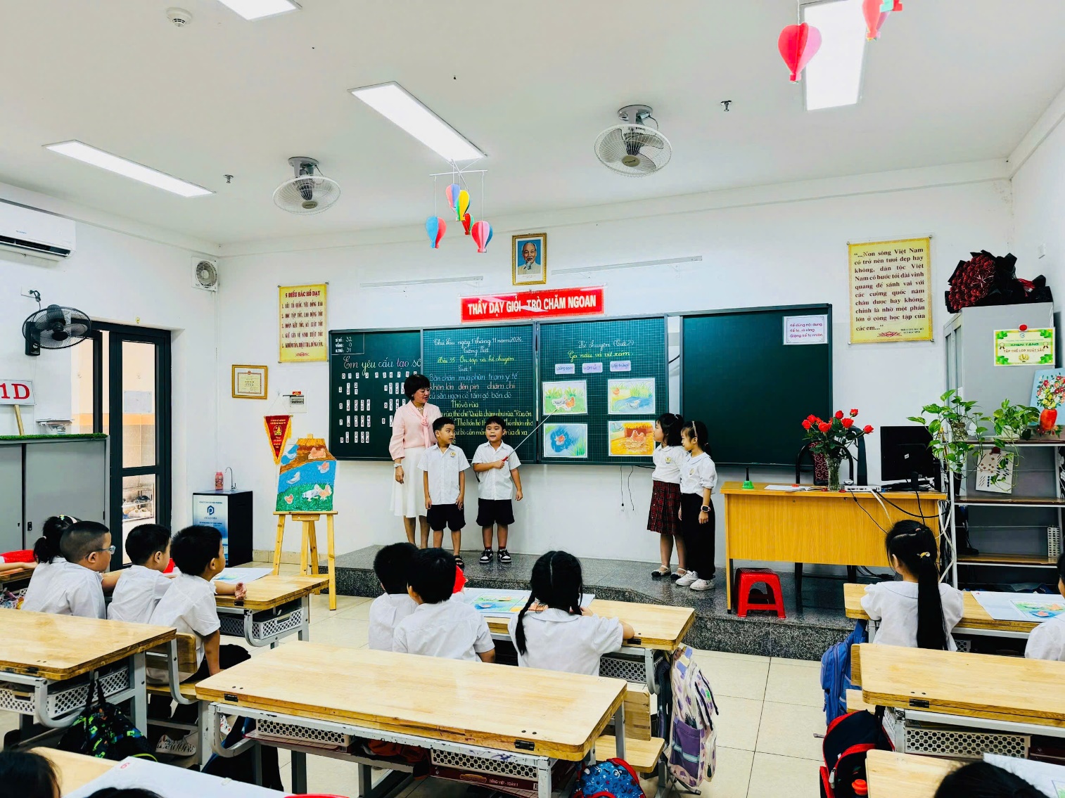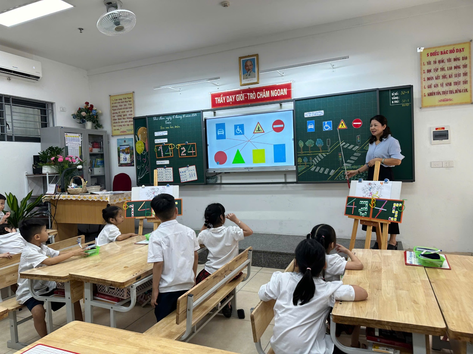 Với tiết học “Làm quen với phép cộng, dấu cộng”, cô giáo Hoàng Thị Thu Hà đã mở ra cho học sinh lớp 1B cánh cửa đầu tiên vào thế giới các phép tính. Bằng phương pháp dạy học trực quan sinh động, cô Hà đã giúp học sinh dễ dàng nắm bắt khái niệm “thêm vào” và hiểu ý nghĩa của dấu cộng trong phép tính.