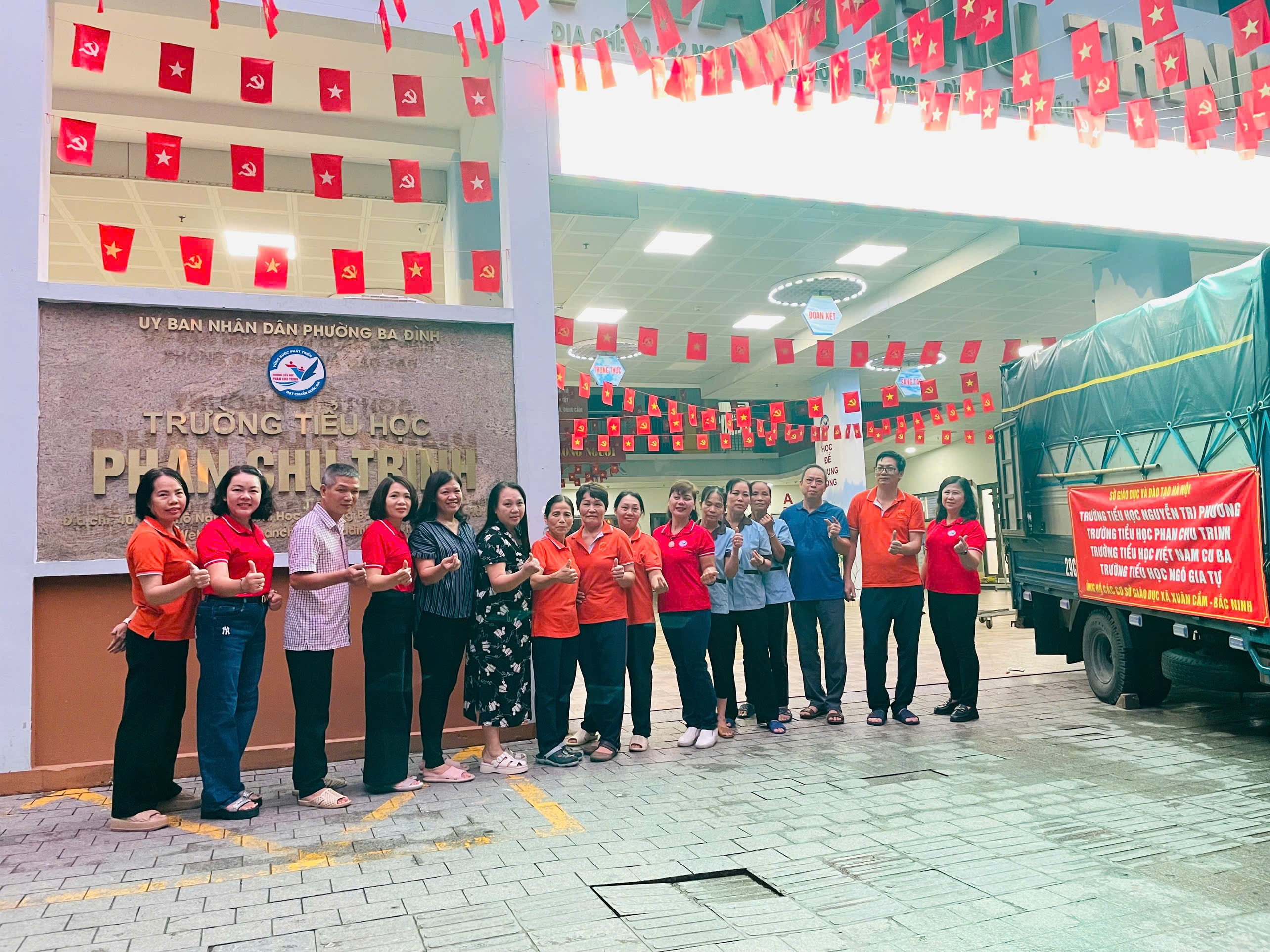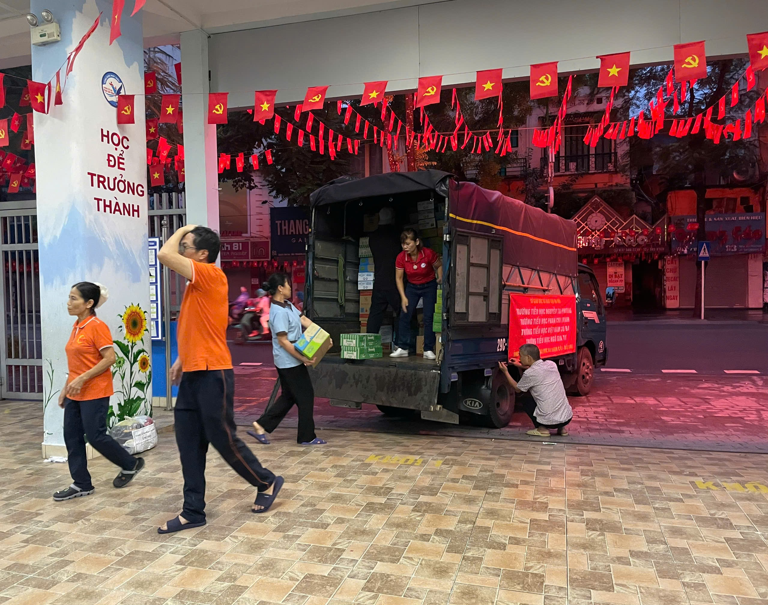 Chuyến đi mang theo tấm lòng sẻ chia, tình cảm ấm áp của thầy, cô giáo, phụ huynh học sinh và học sinh nhà trường – hướng về đồng bào miền Bắc đang chịu ảnh hưởng nặng nề sau bão số 10 và 11.