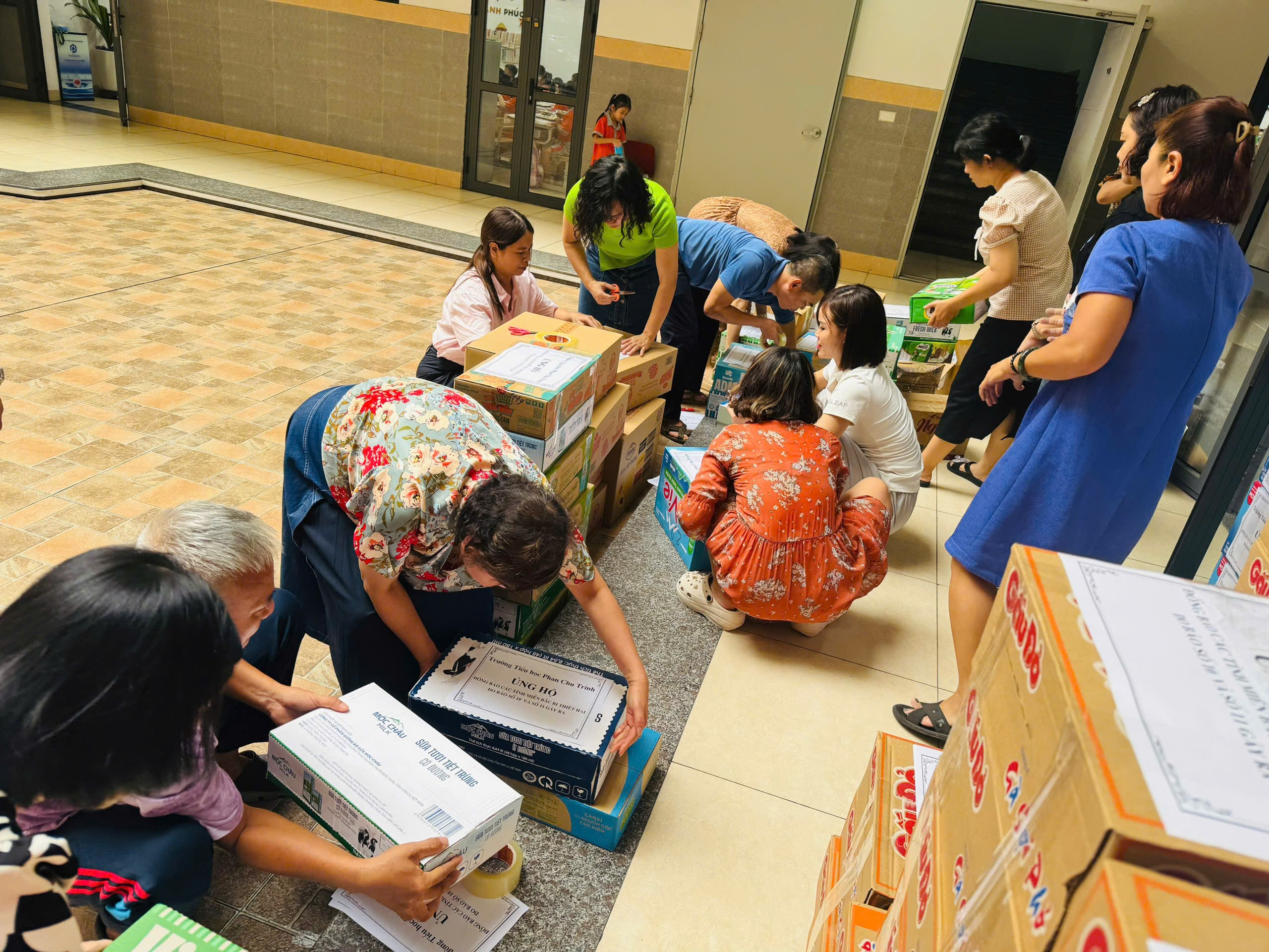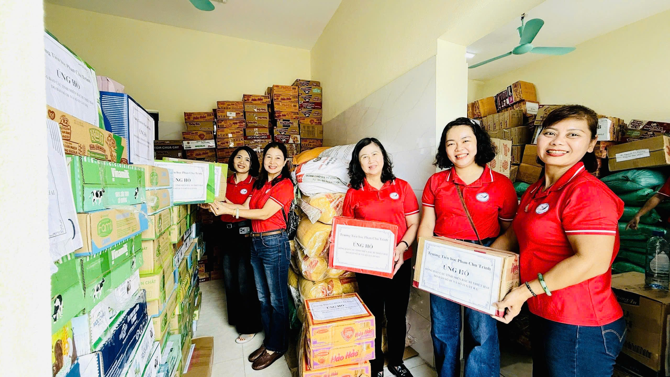 Những món quà giản dị nhưng chứa đựng tình người sâu sắc – mì tôm, gạo, sữa, dầu ăn, bánh ngọt, lương khô, nước uống, vở viết… – được thầy cô và học sinh nâng niu đóng gói cẩn thận, gửi gắm trong đó là bao lời động viên, hy vọng và niềm tin. Những chuyến xe nghĩa tình lăn bánh vượt qua đoạn đường ngập nước, mang theo bao yêu thương của tập thể thầy trò nhà trường, với mong muốn góp phần nhỏ bé giúp bà con vùng lũ sớm ổn định cuộc sống, vơi bớt khó khăn sau thiên tai.