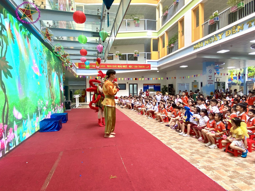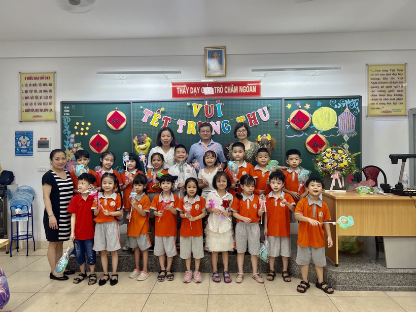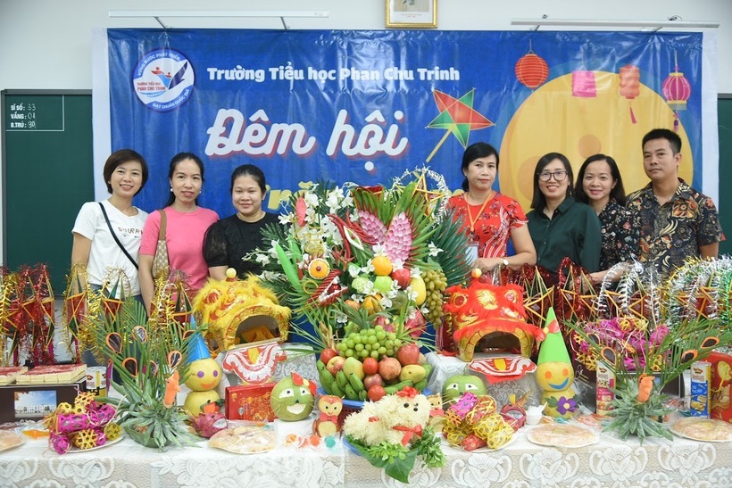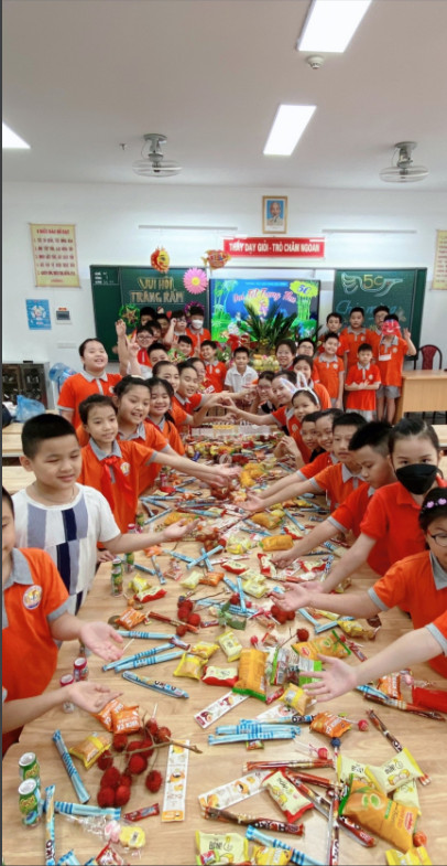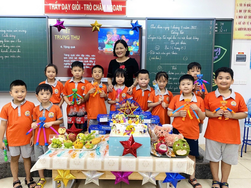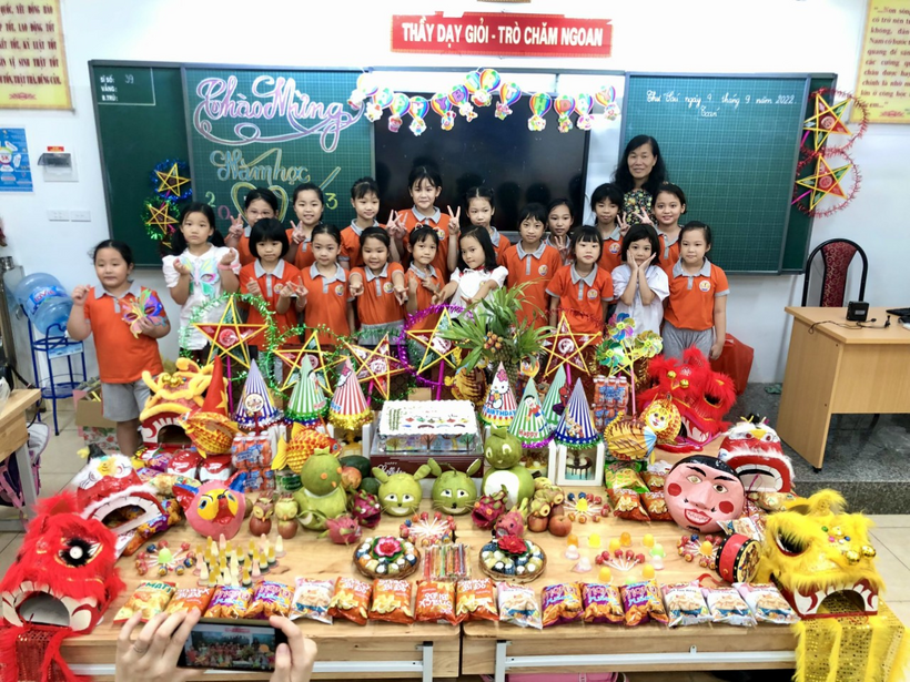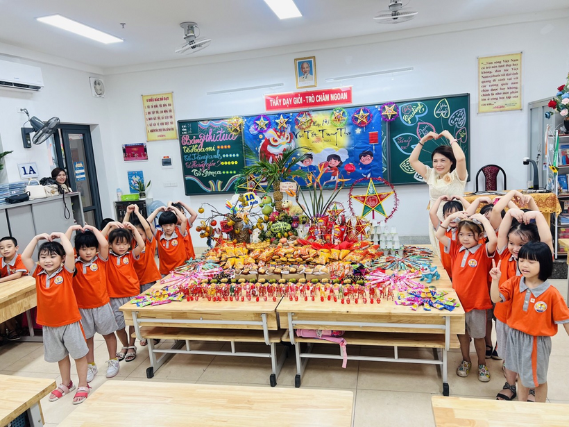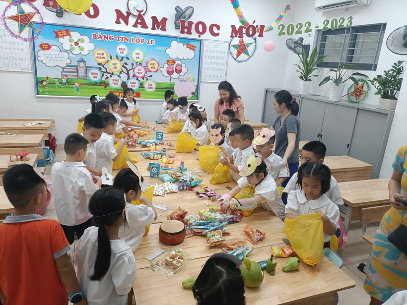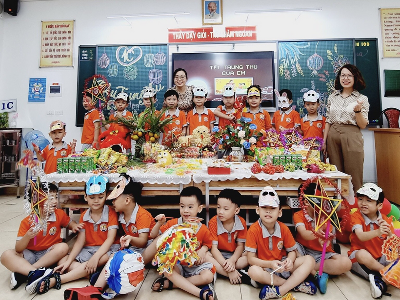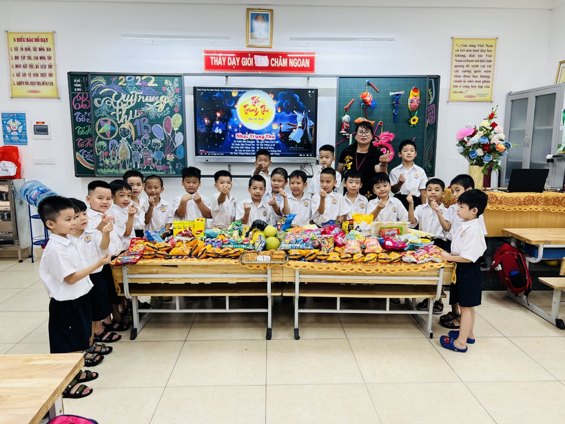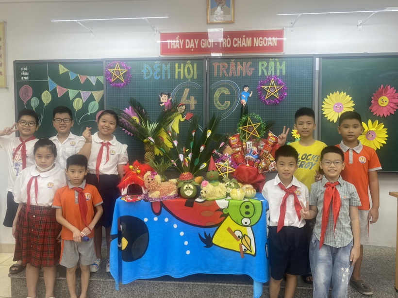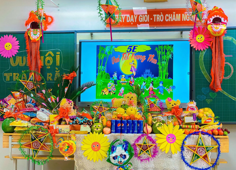 Không khí của ngày Tết Trung thu còn lan tỏa đến từng lớp học. Những mâm cỗ trông trăng do cô giáo và các em tự tay bầy biện đã góp phần tái hiện phong tục cổ truyền của người Việt khi đón Tết Trung thu. Niềm vui phá cỗ cùng các bạn và thầy cô sẽ là những kỉ niệm không bao giờ quên của các em học sinh nhà trường.